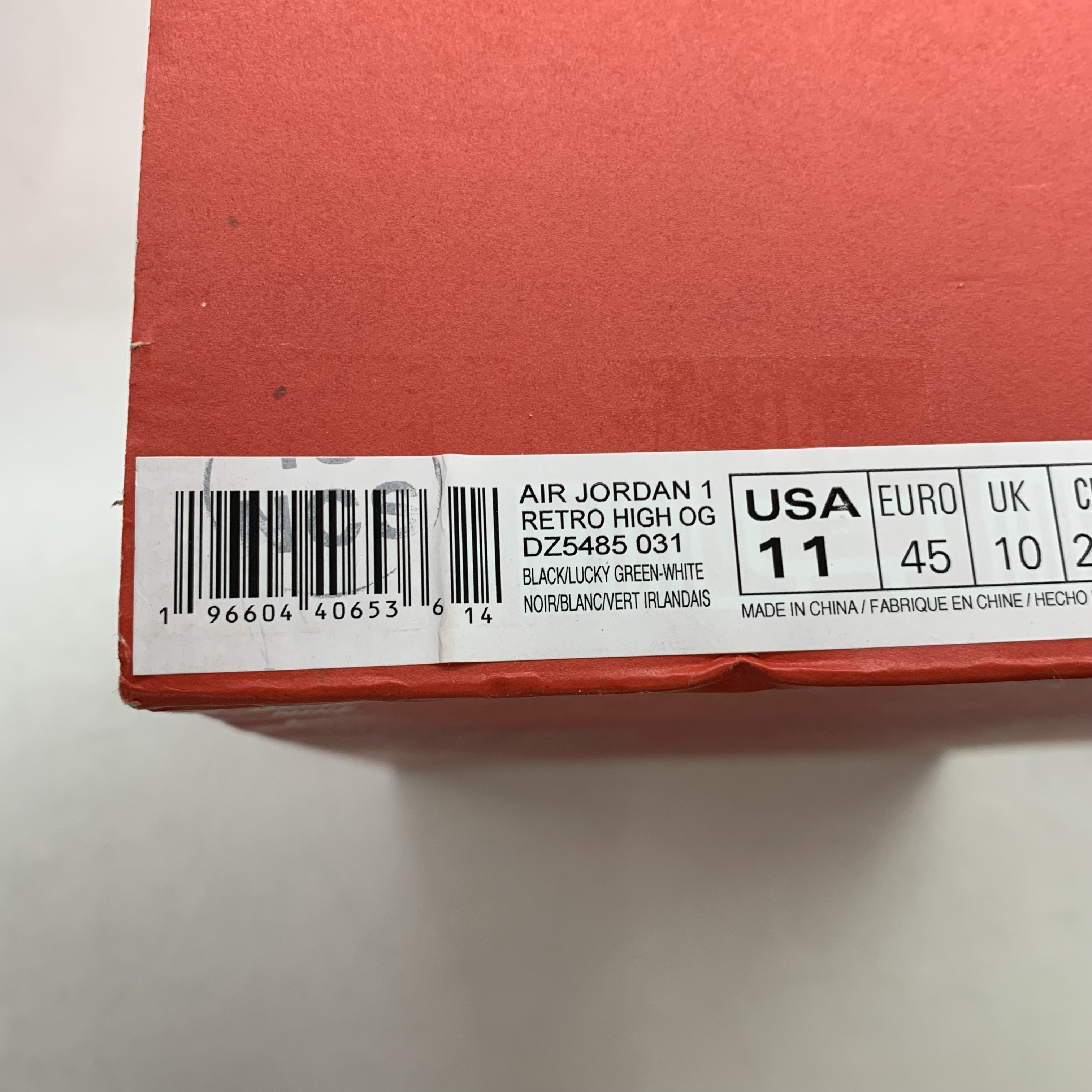 조던 1 레트로 하이 OG 블랙 앤 럭키 그린