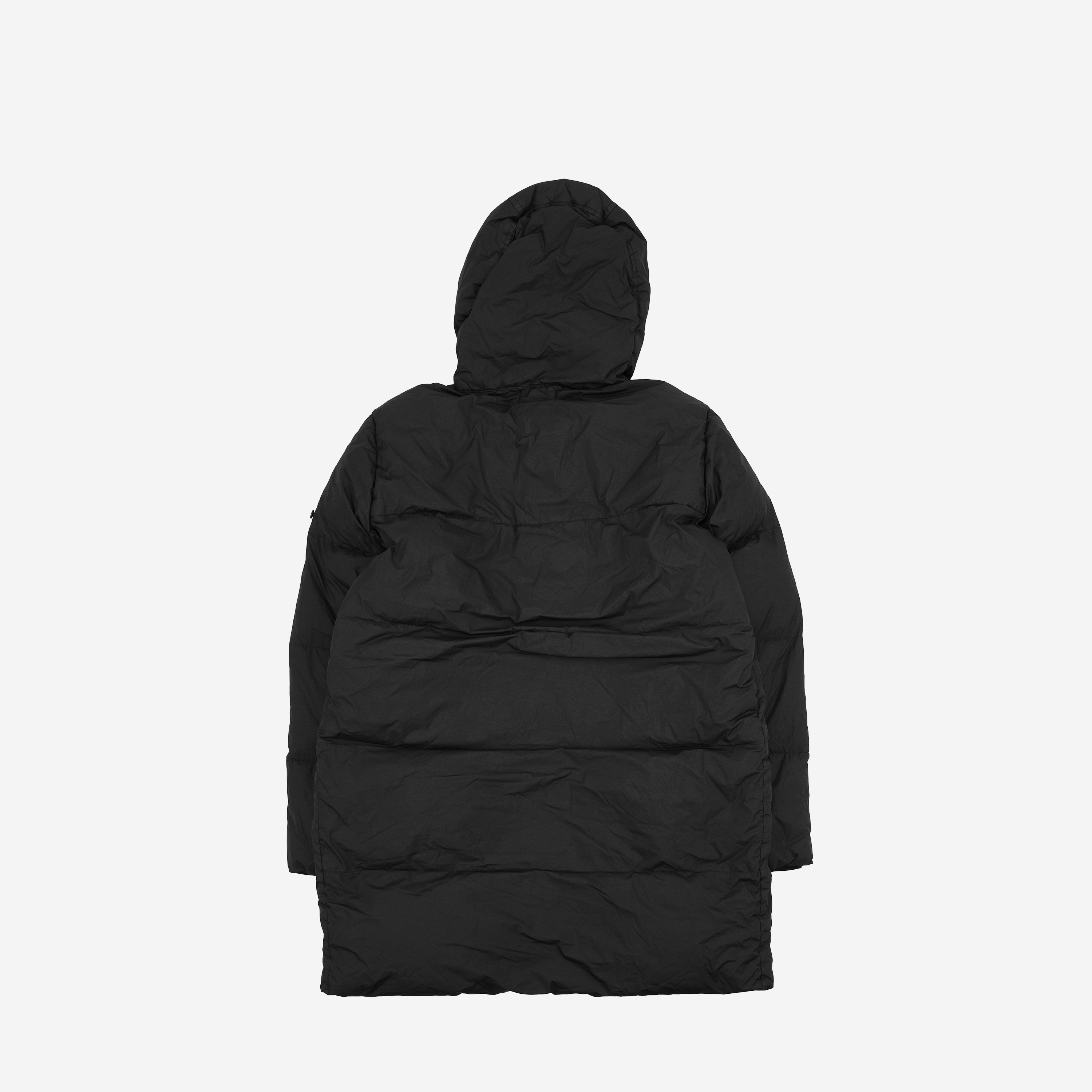 Stone Island 70123 Crinkle Reps Hooded Long Down Jacket Black - 21FW