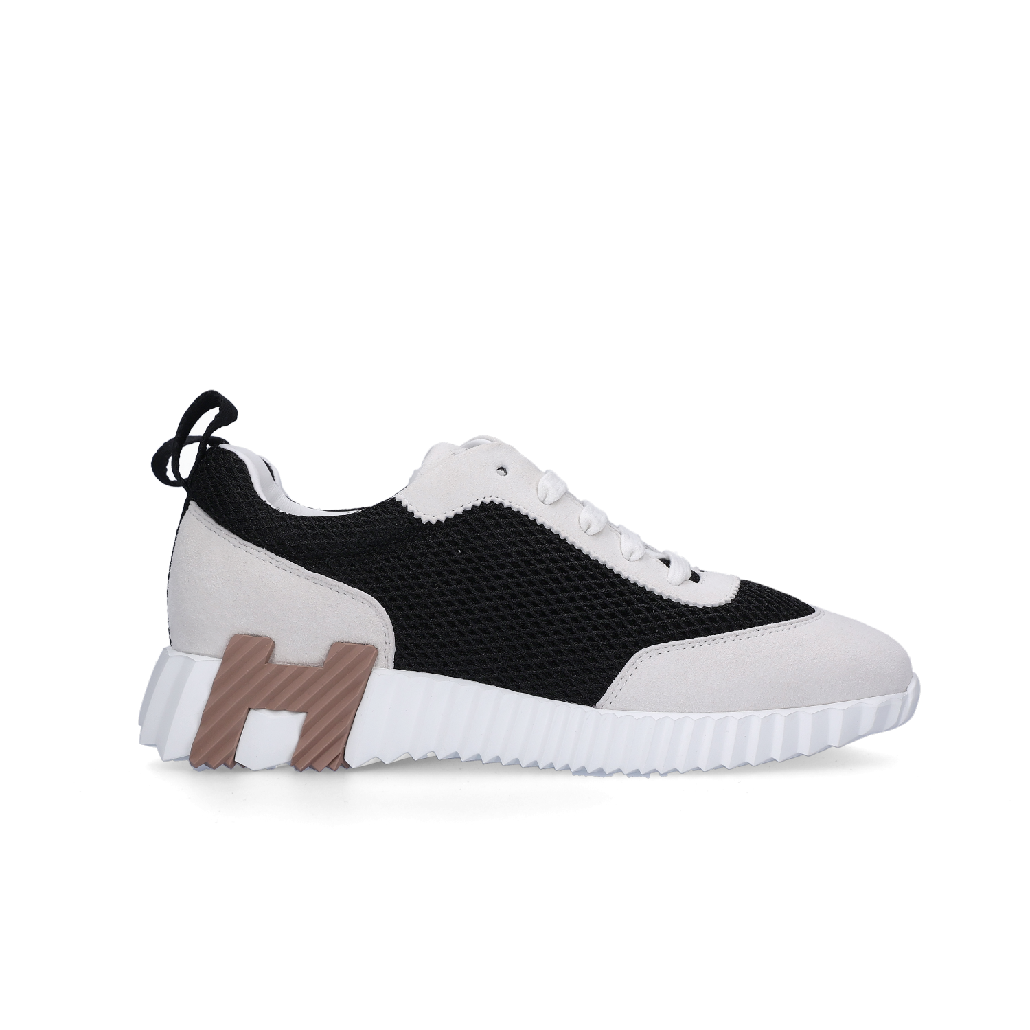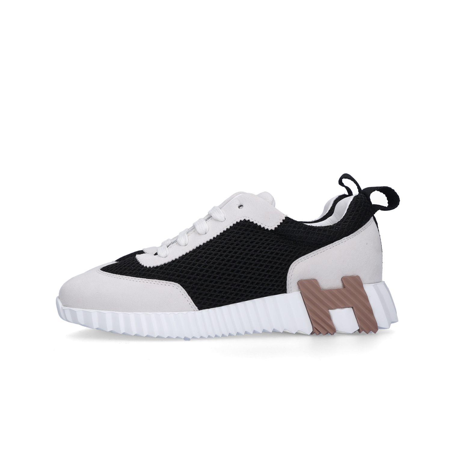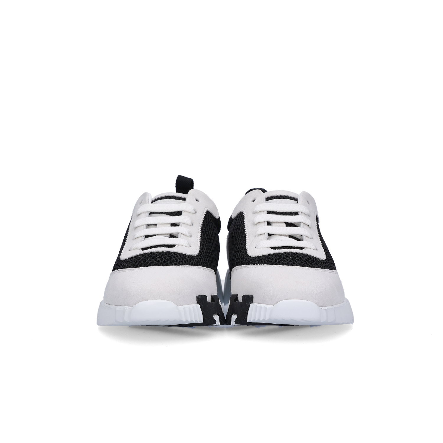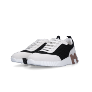 (W) Hermes Bouncing Sneakers Graphic Mesh Suede Goatskin & Noir Blanc