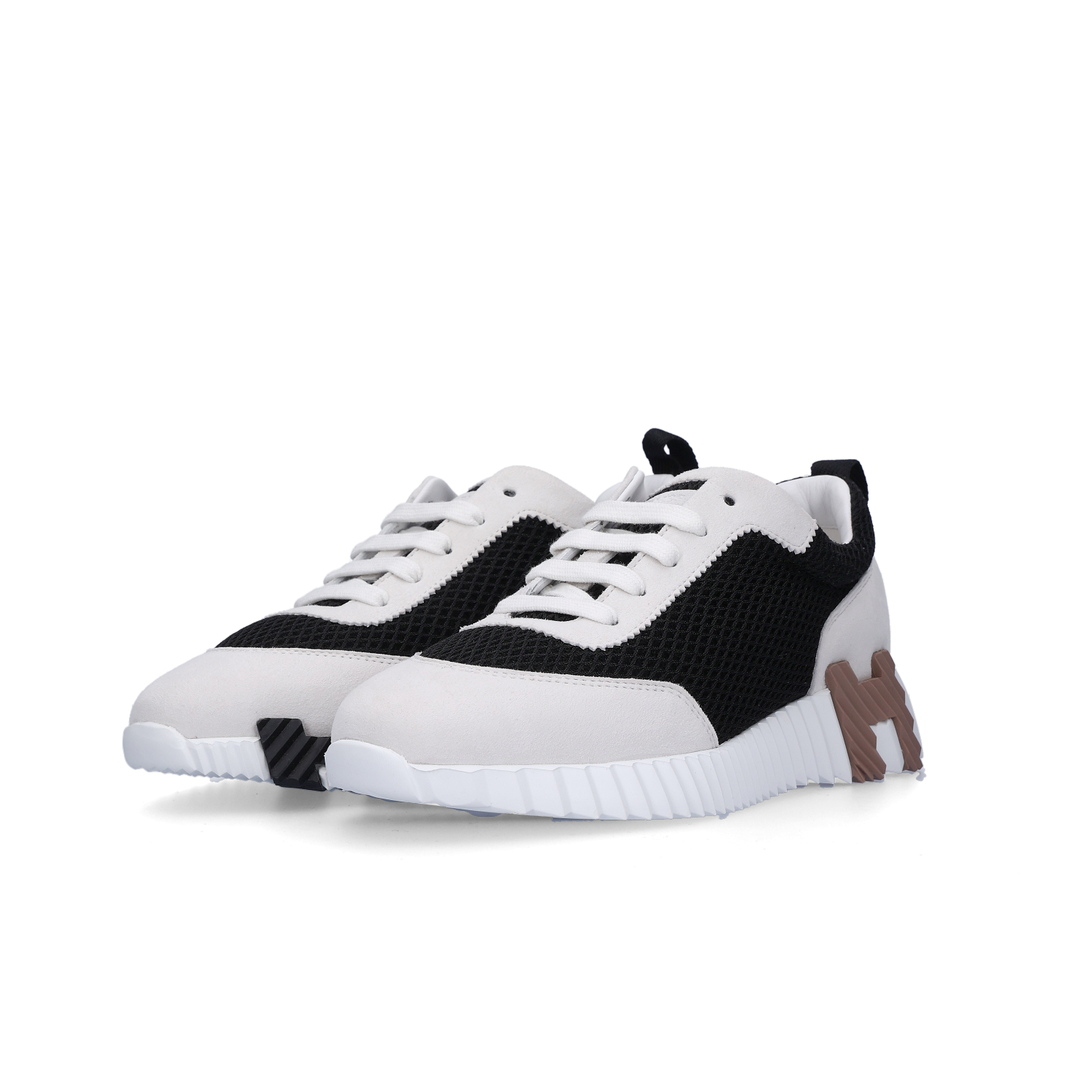(W) 에르메스 바운싱 스니커즈 그래픽 메쉬 스웨이드 고트스킨 & 누아 블랑