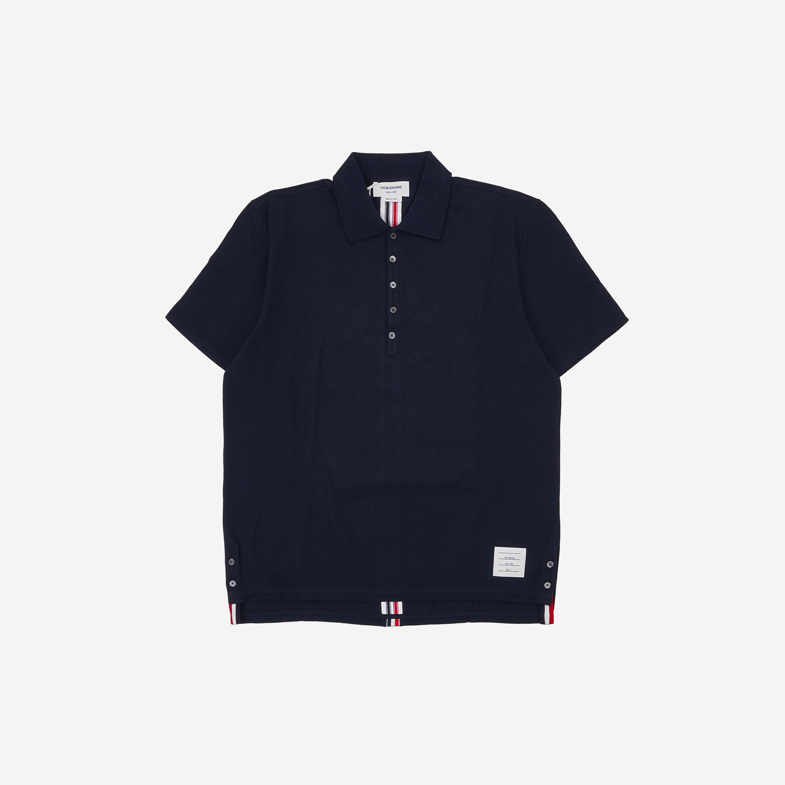 톰브라운 코튼 피케 센터백 스트라이프 릴렉스 핏 폴로 네이비