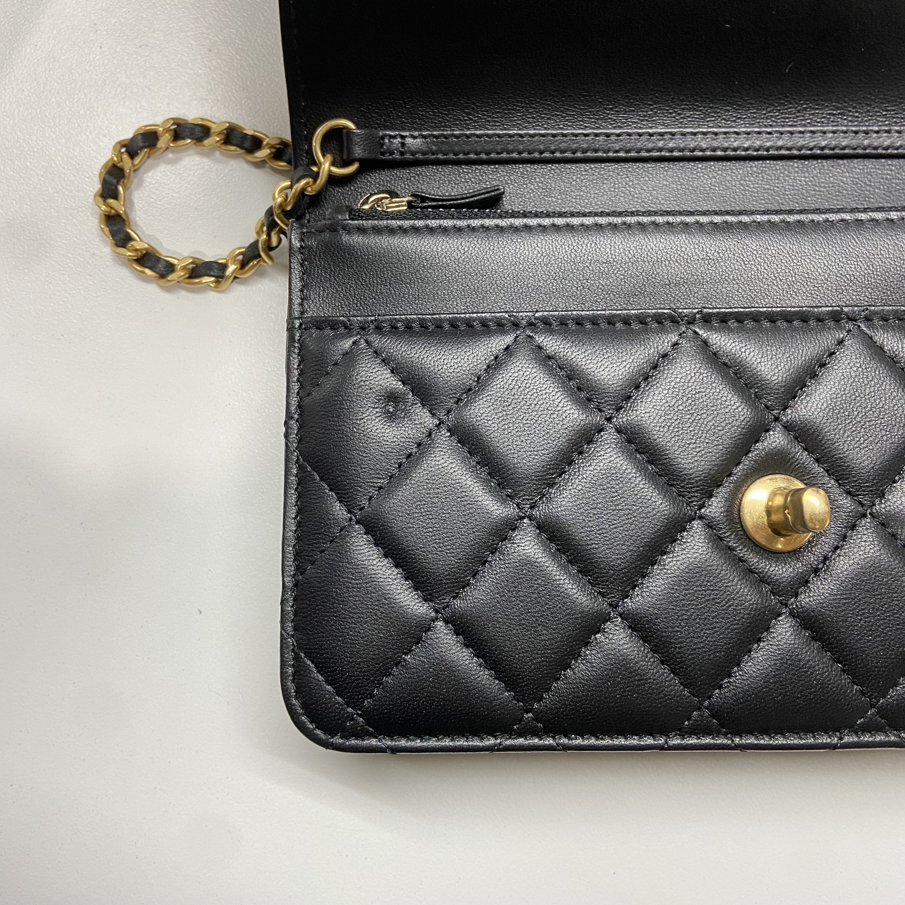 샤넬 체인 지갑 램스킨 & 골드 메탈 블랙