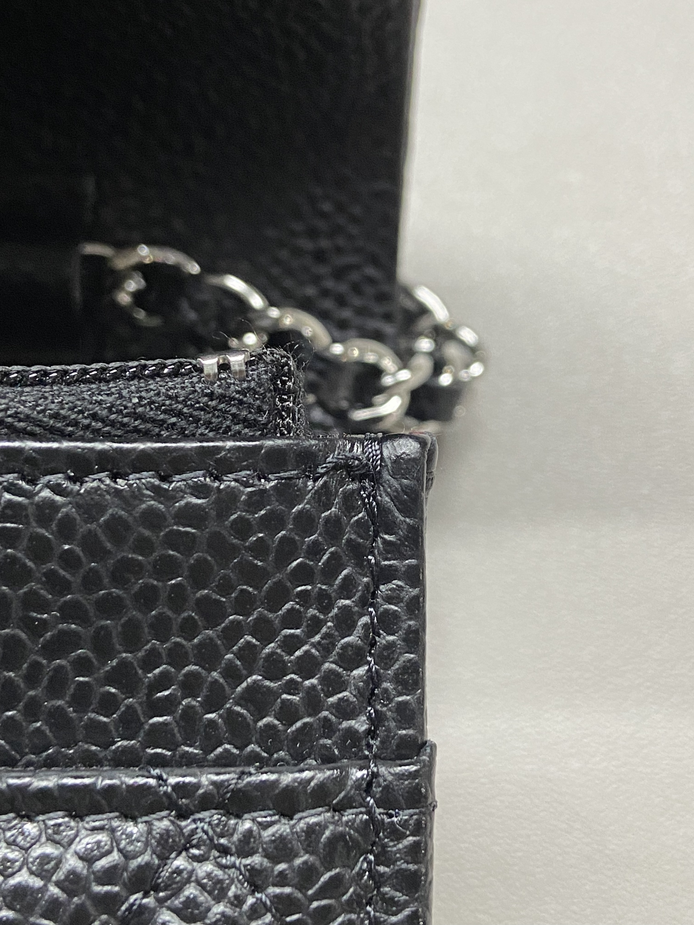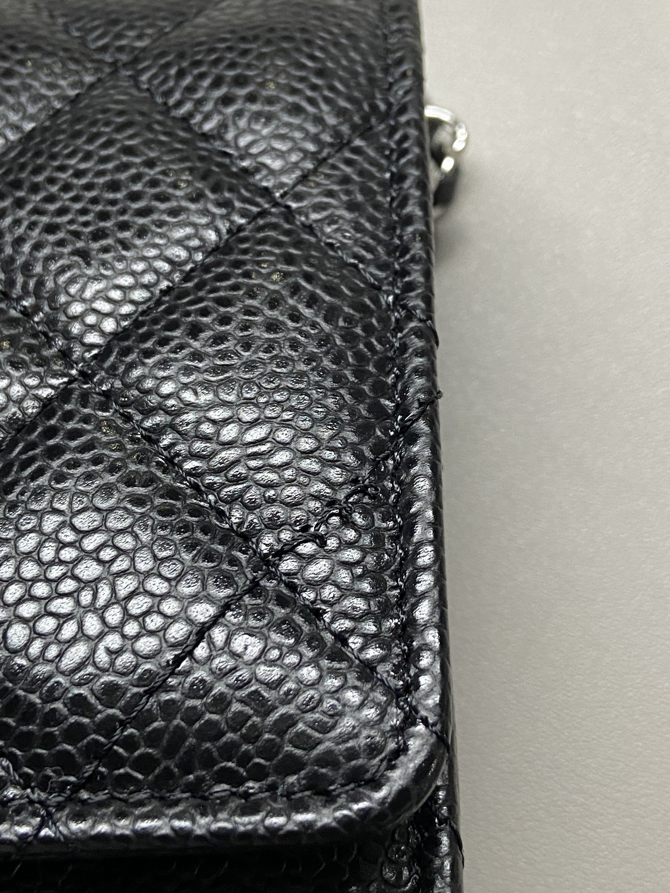 샤넬 클래식 체인 지갑 그레인드 카프스킨 & 실버 메탈 블랙