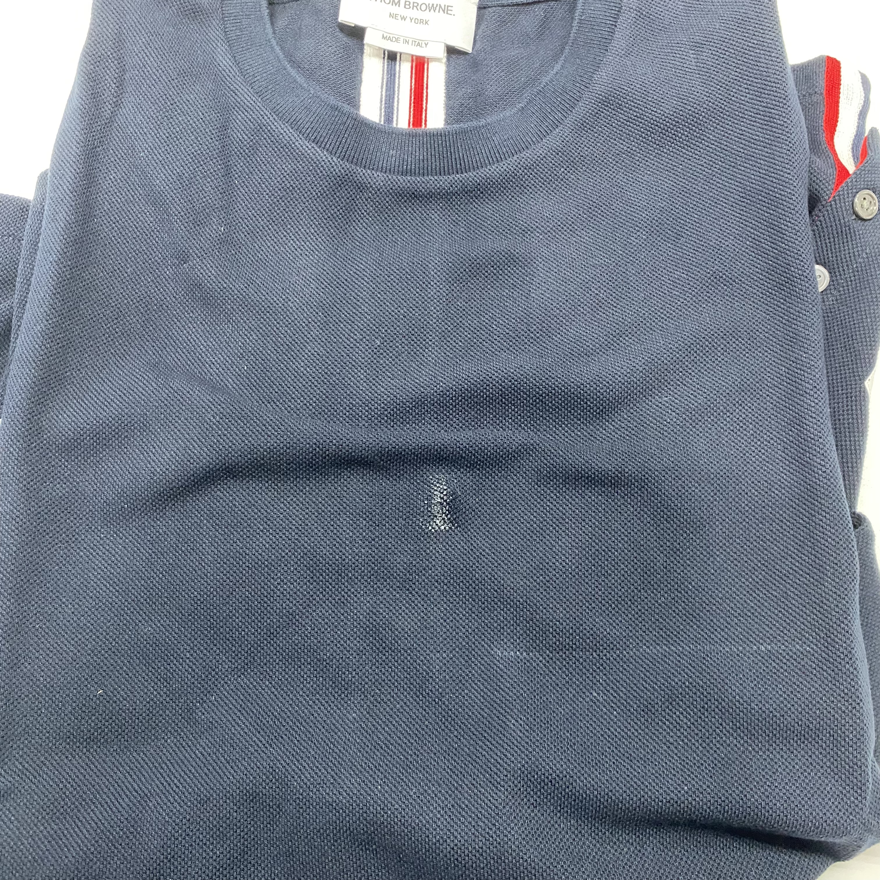 톰브라운 피케 센터 백 스트라이프 릴렉스 핏 티셔츠 네이비