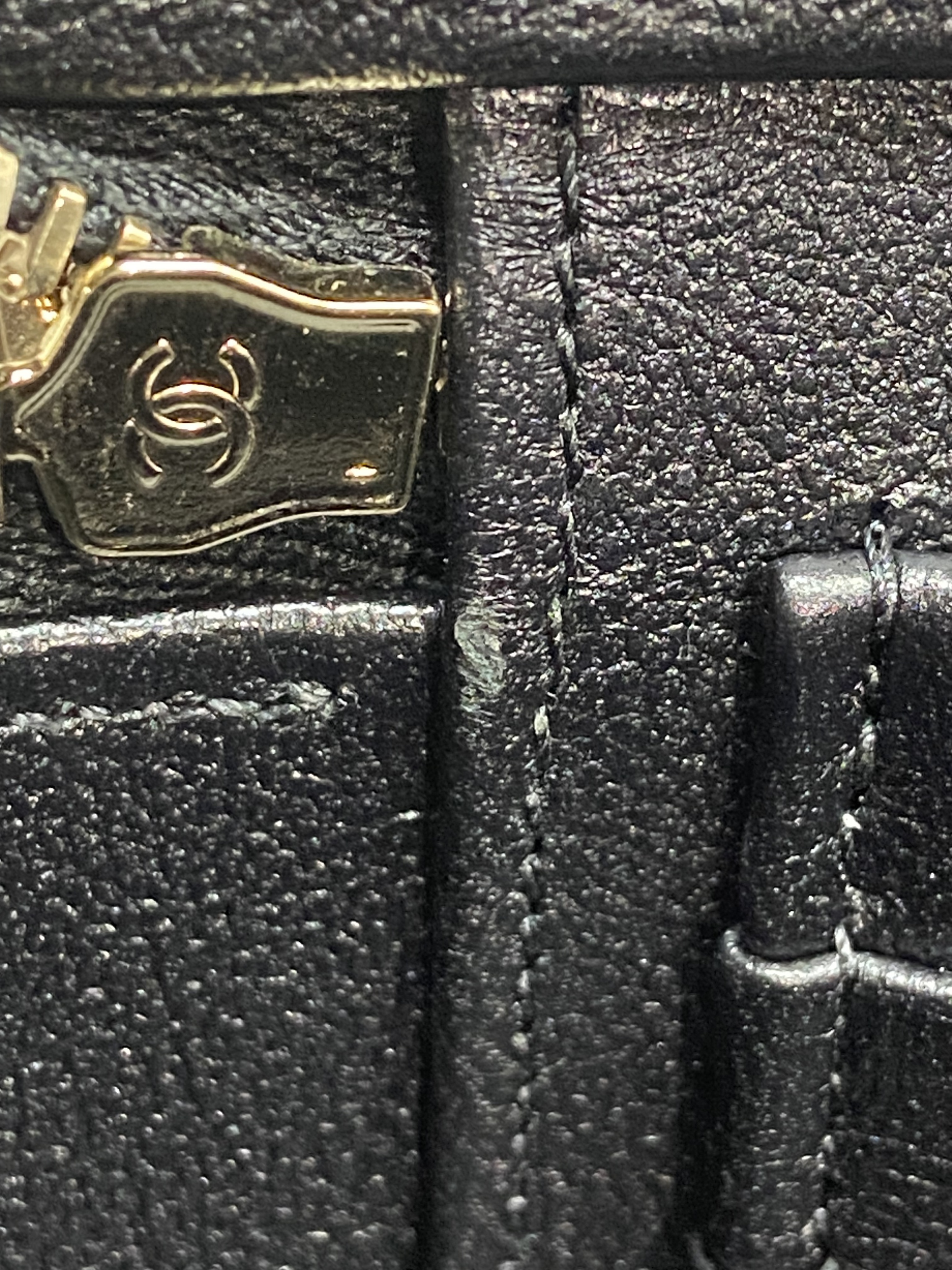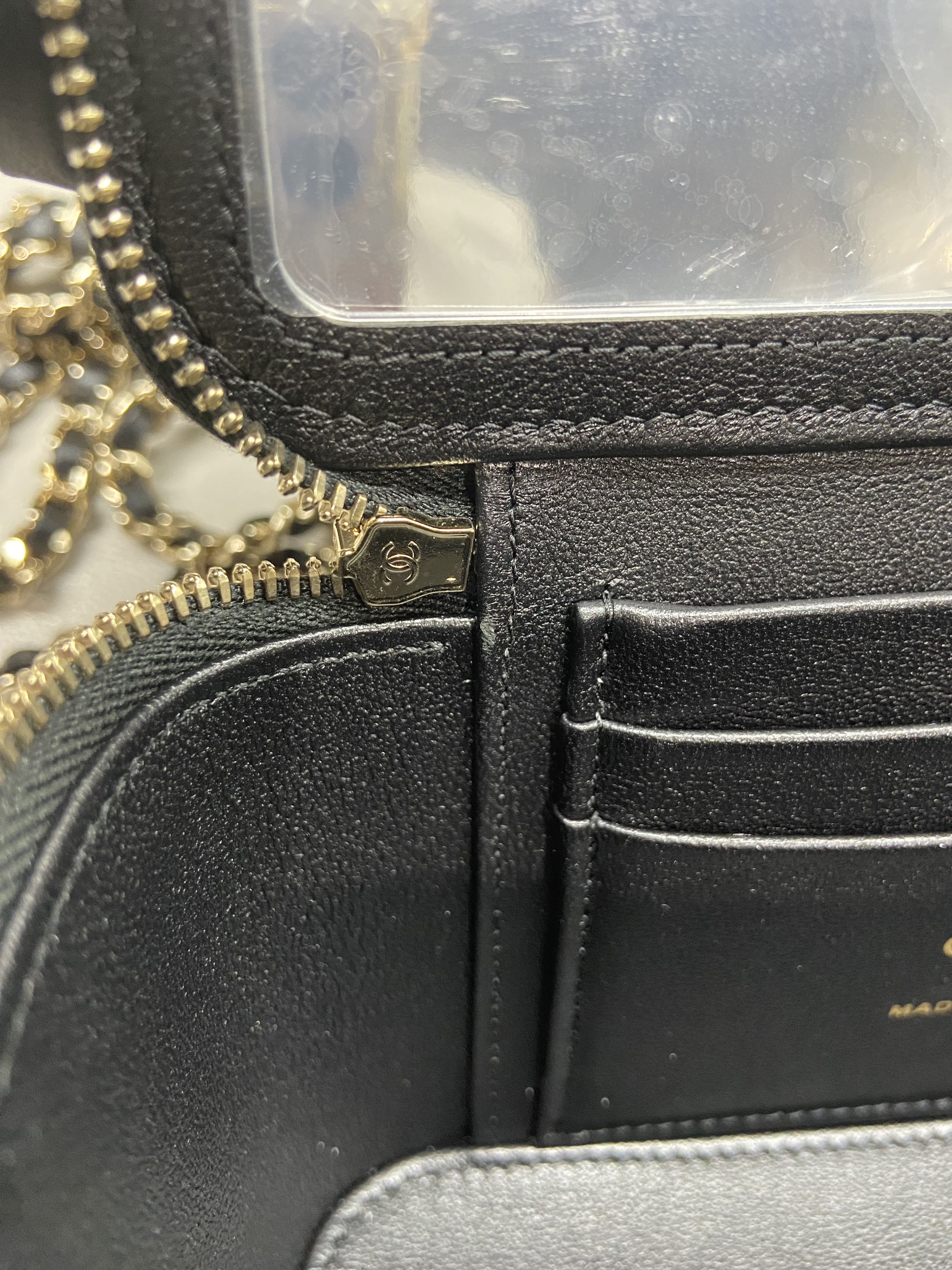 샤넬 체인 코스메틱 케이스 램스킨 & 골드 메탈 블랙 (내부 거울 포함)