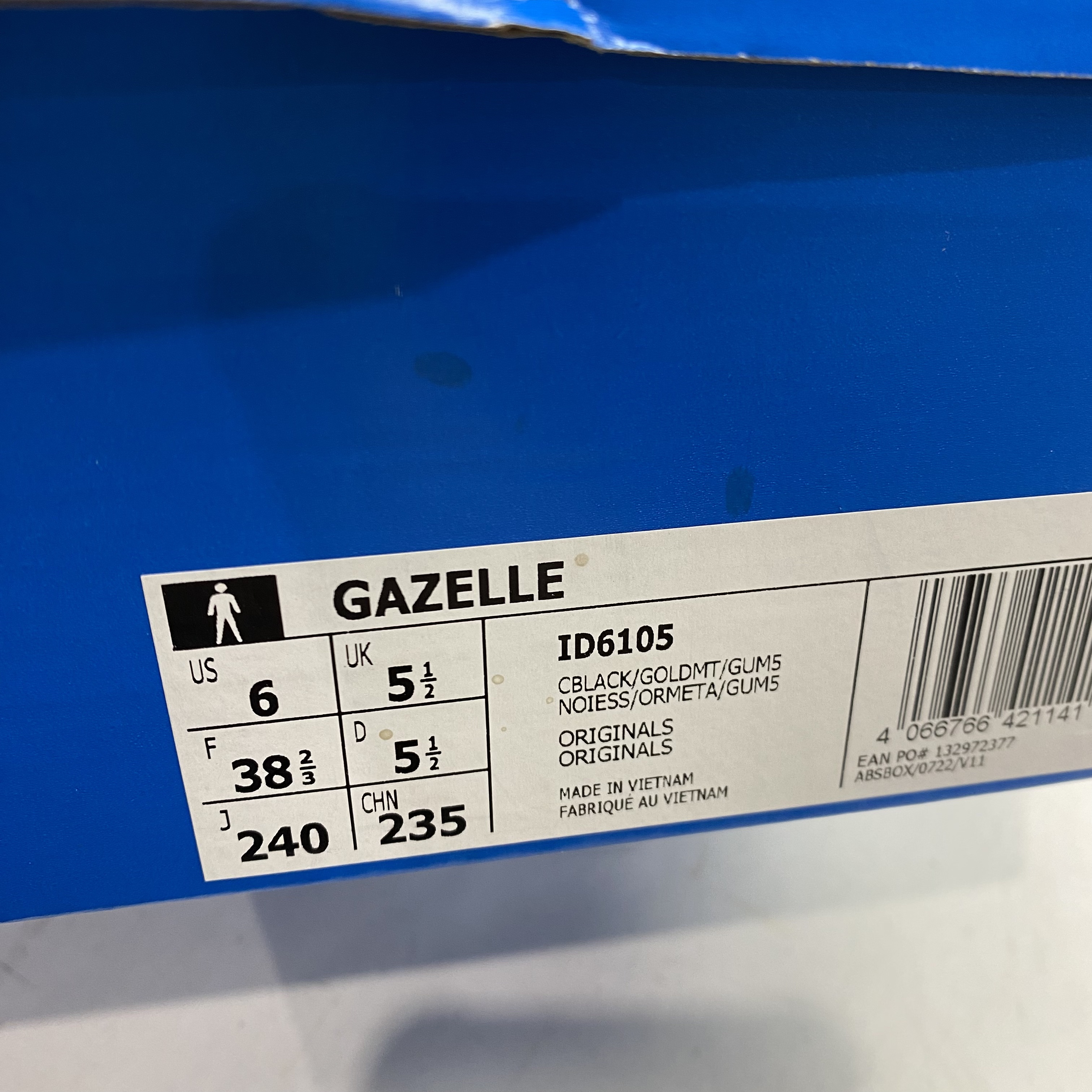 Adidas Gazelle Core Black Gold Metallic Gum