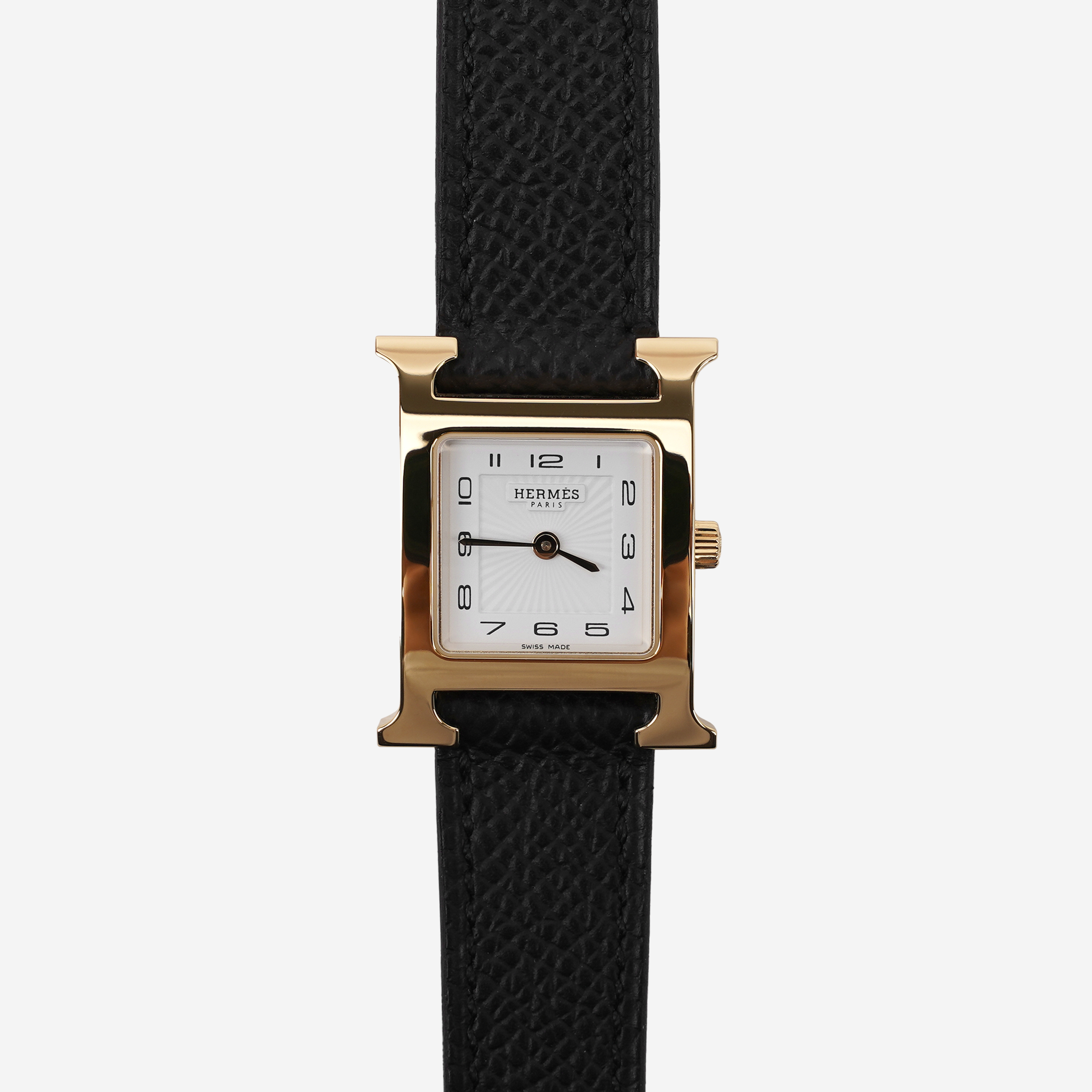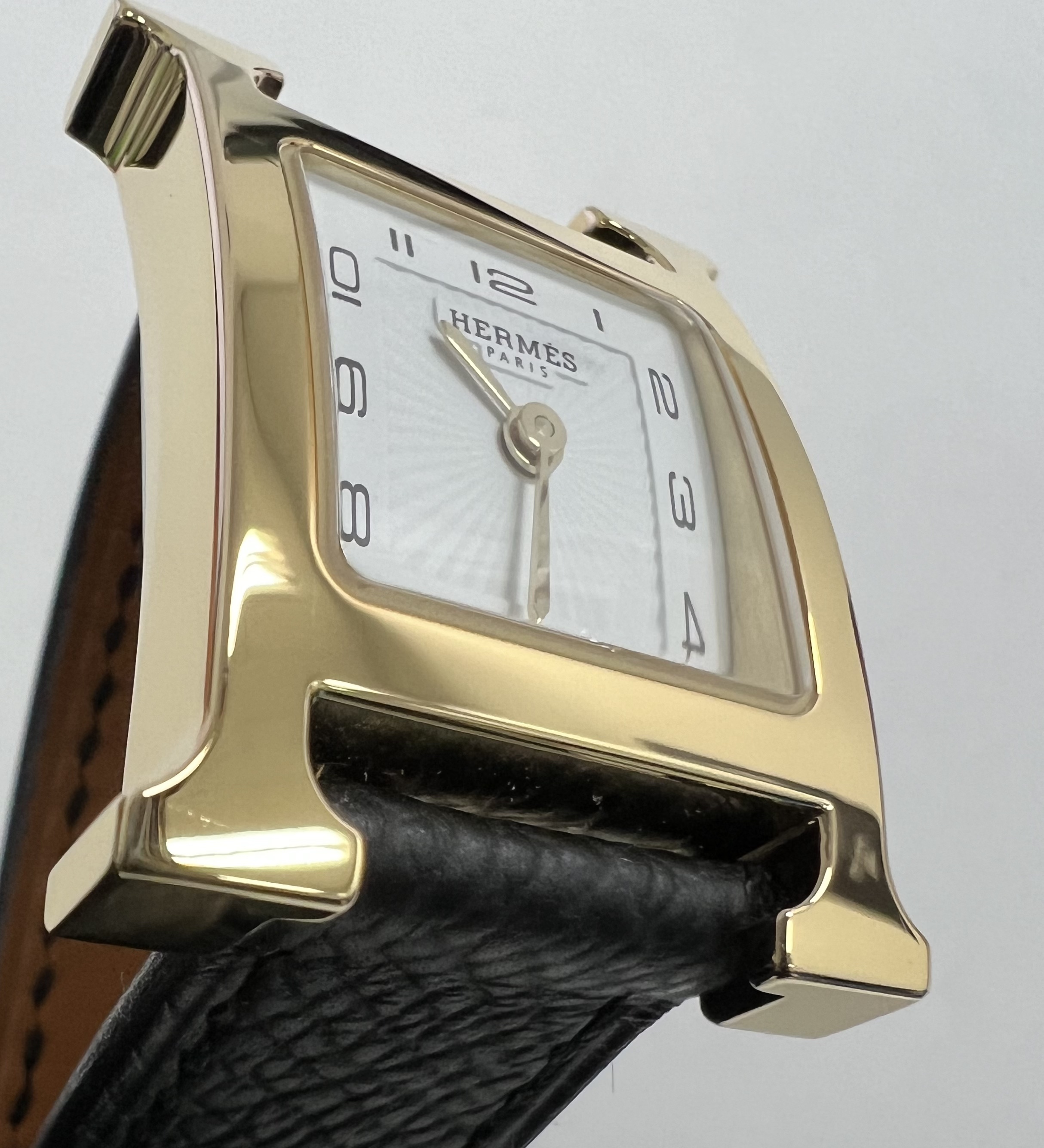 에르메스 H 아워 워치 스몰 블랙 앱송 스트랩 & 옐로우 골드 스틸