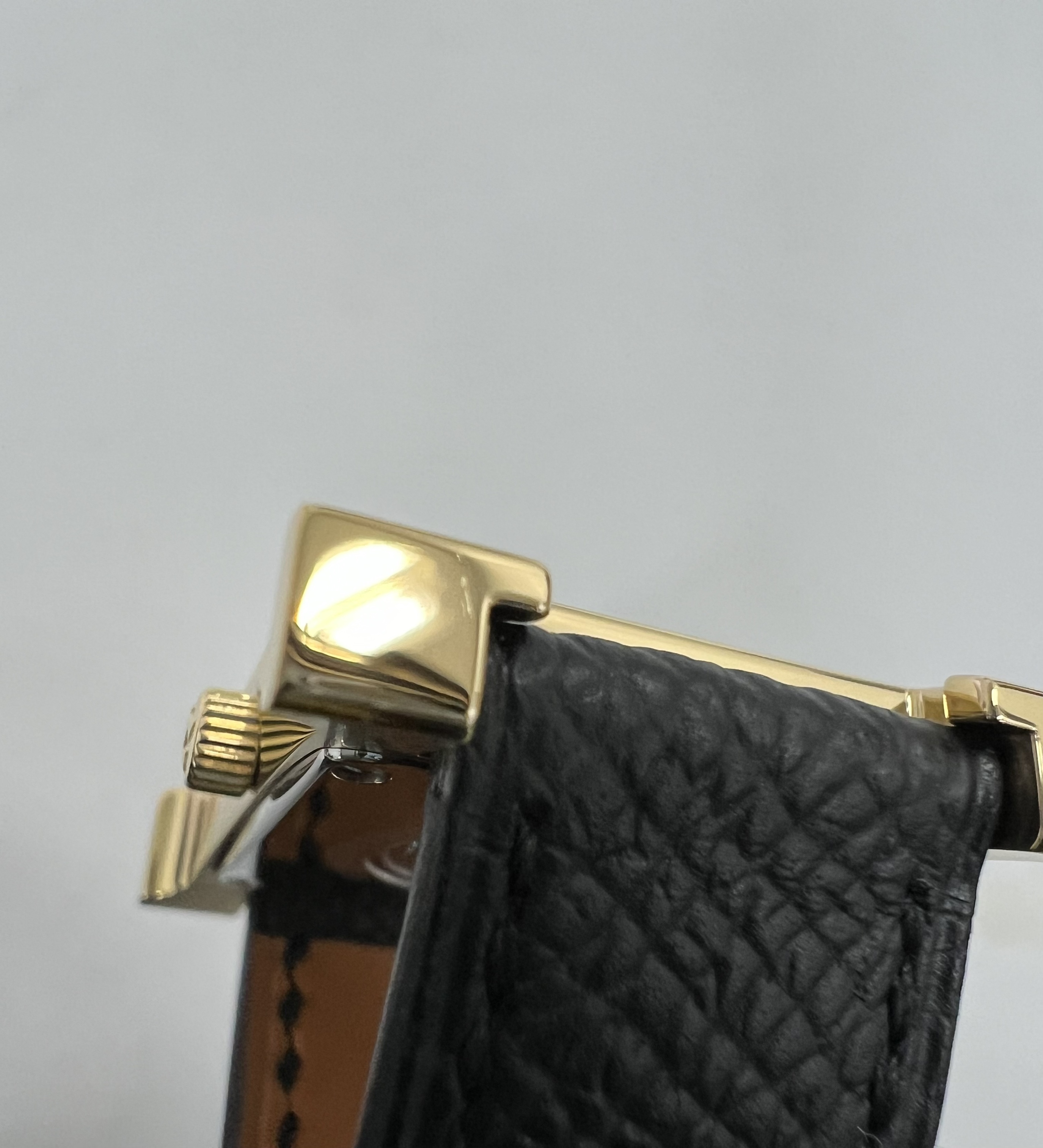 Hermes Heure H Watch Small Black Epsom Strap & Yellow Gold Steel