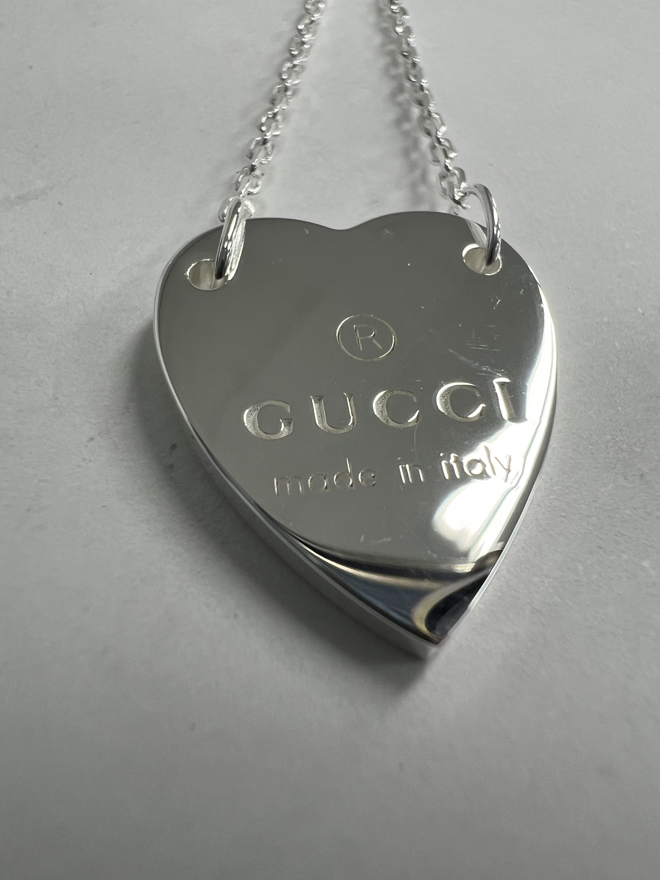 구찌 트레이드마크 하트 펜던트 네클리스 실버