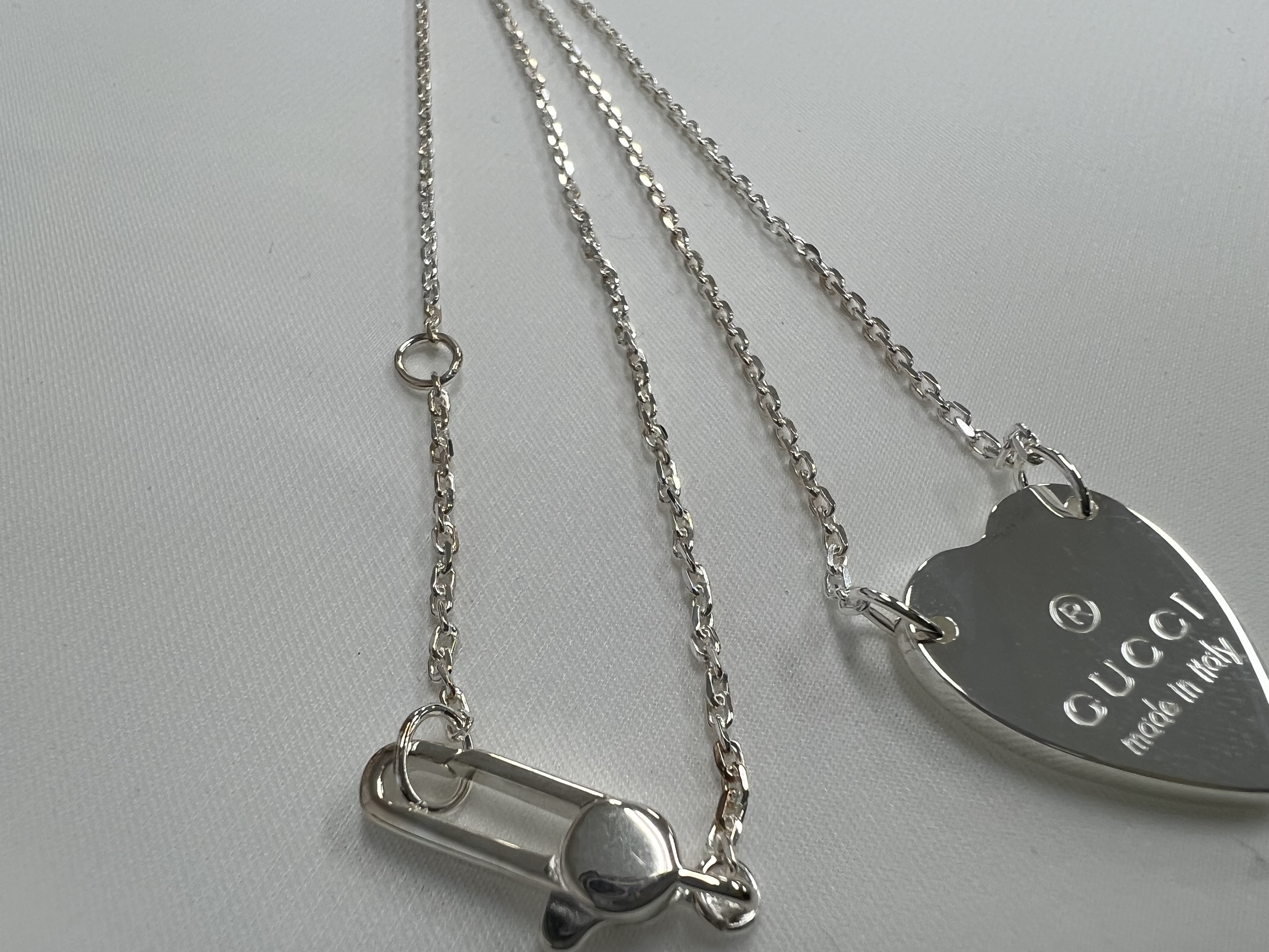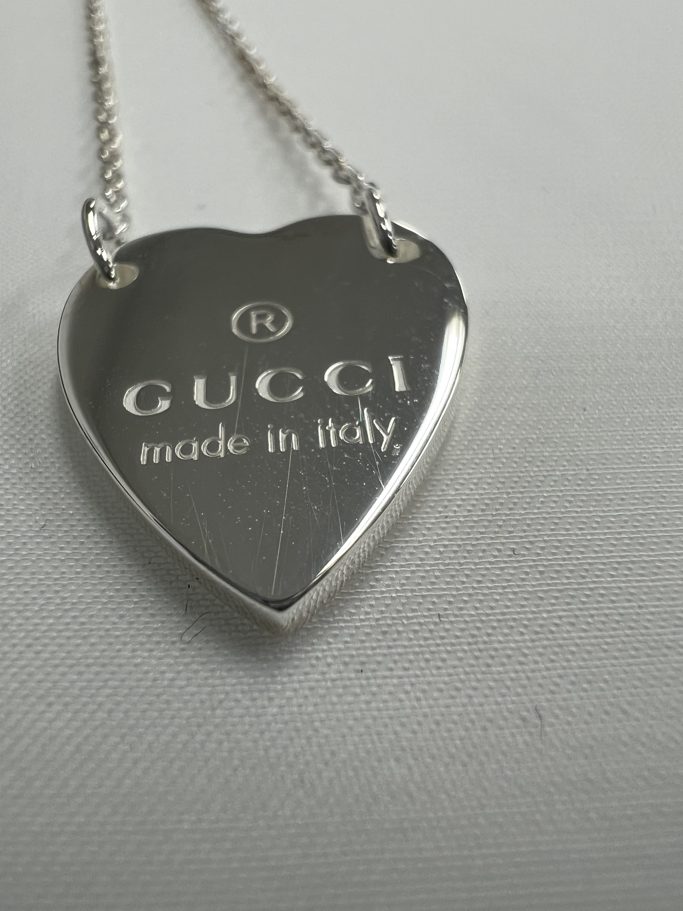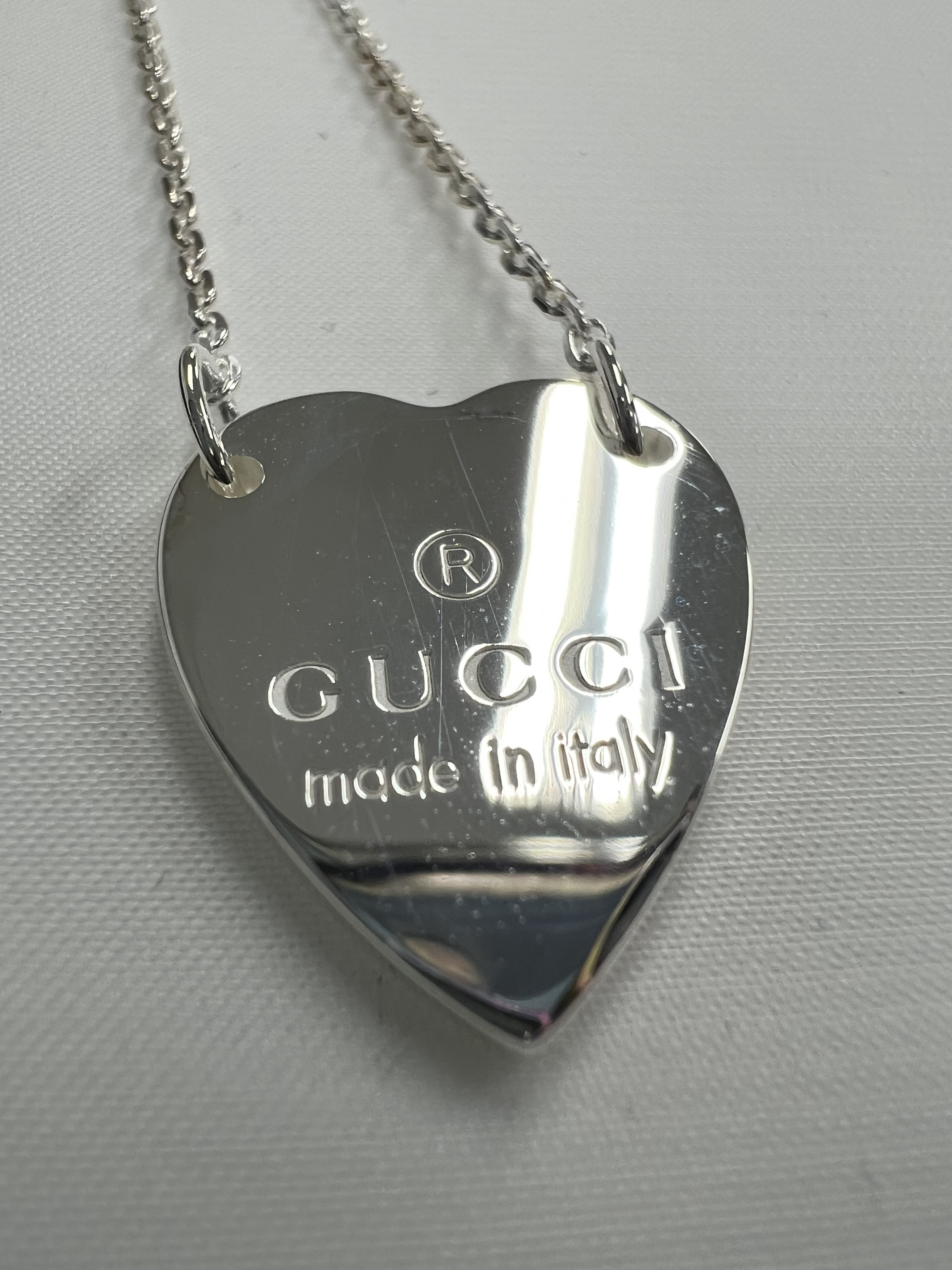 구찌 트레이드마크 하트 펜던트 네클리스 실버