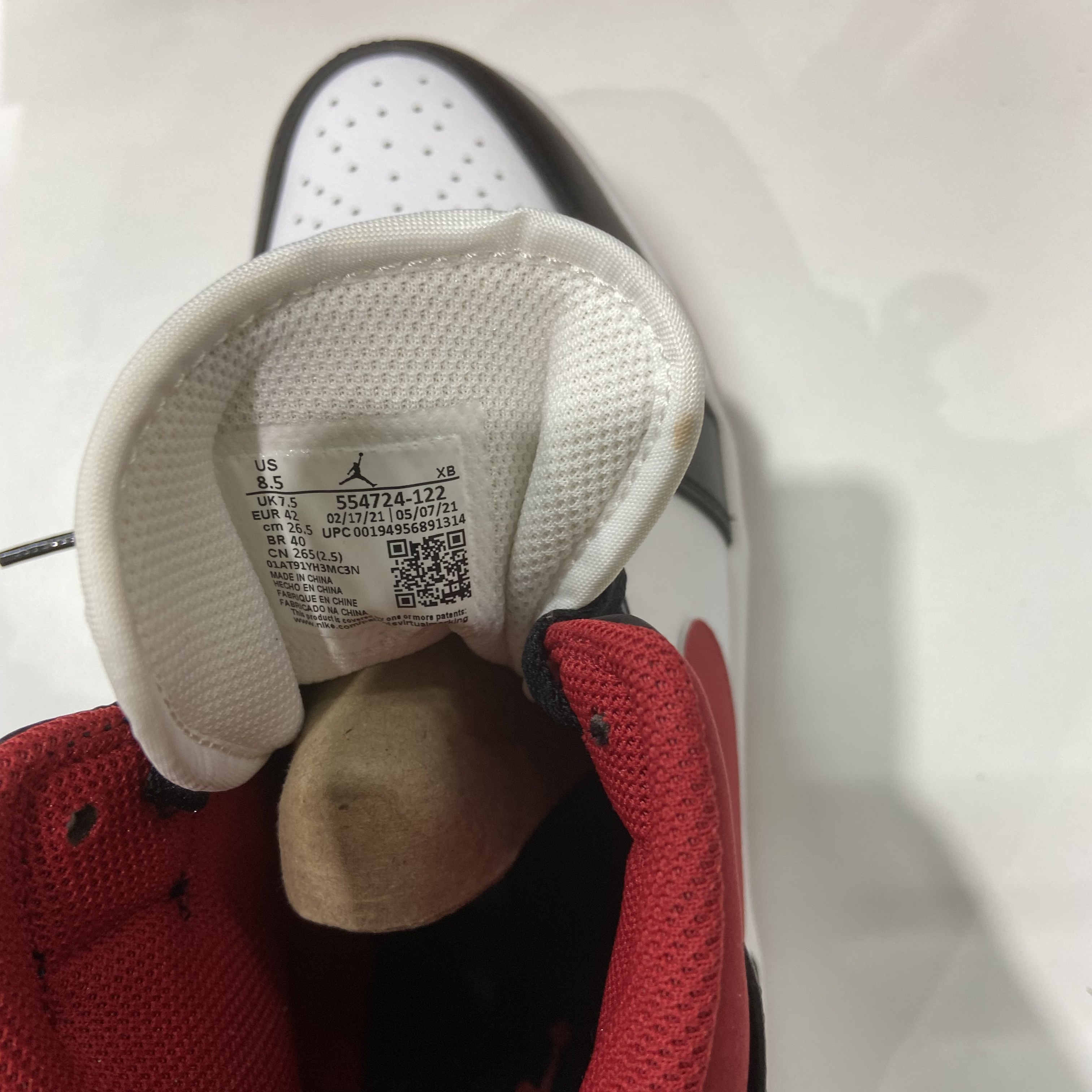 조던 1 미드 짐레드 블랙 화이트