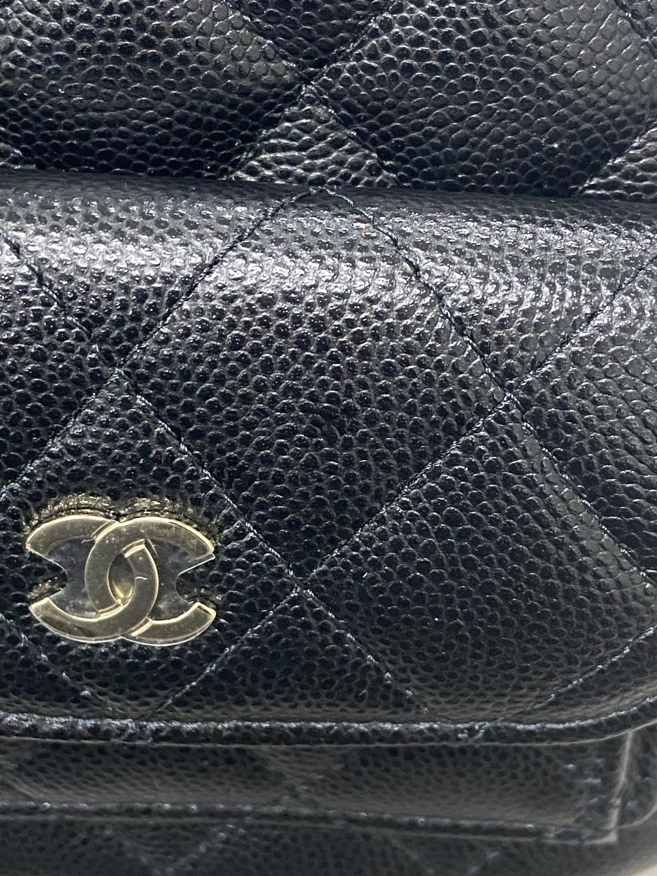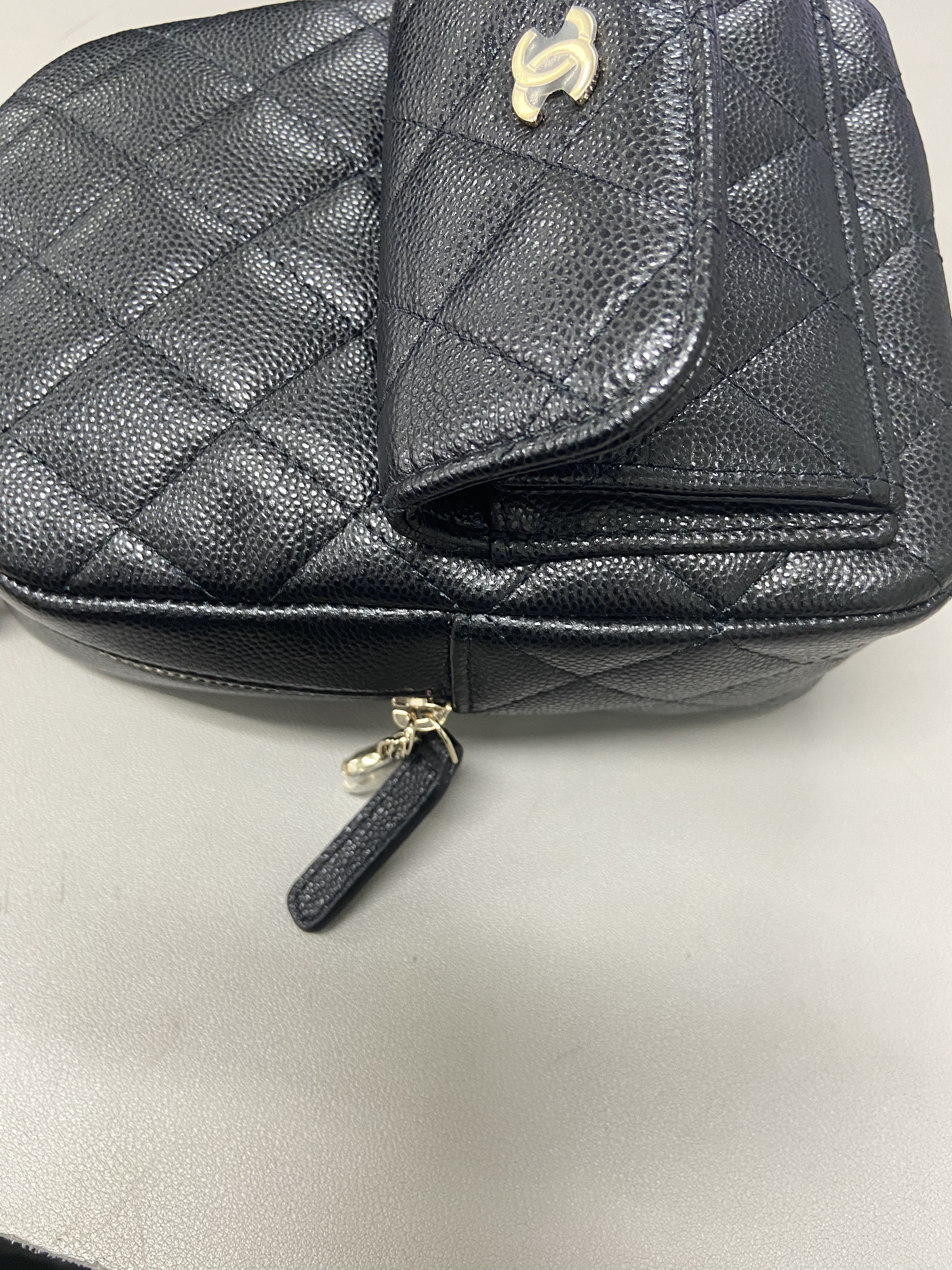 샤넬 클래식 핸드폰 홀더 체인 달린 샤이니 카프스킨 & 골드 메탈 블랙
