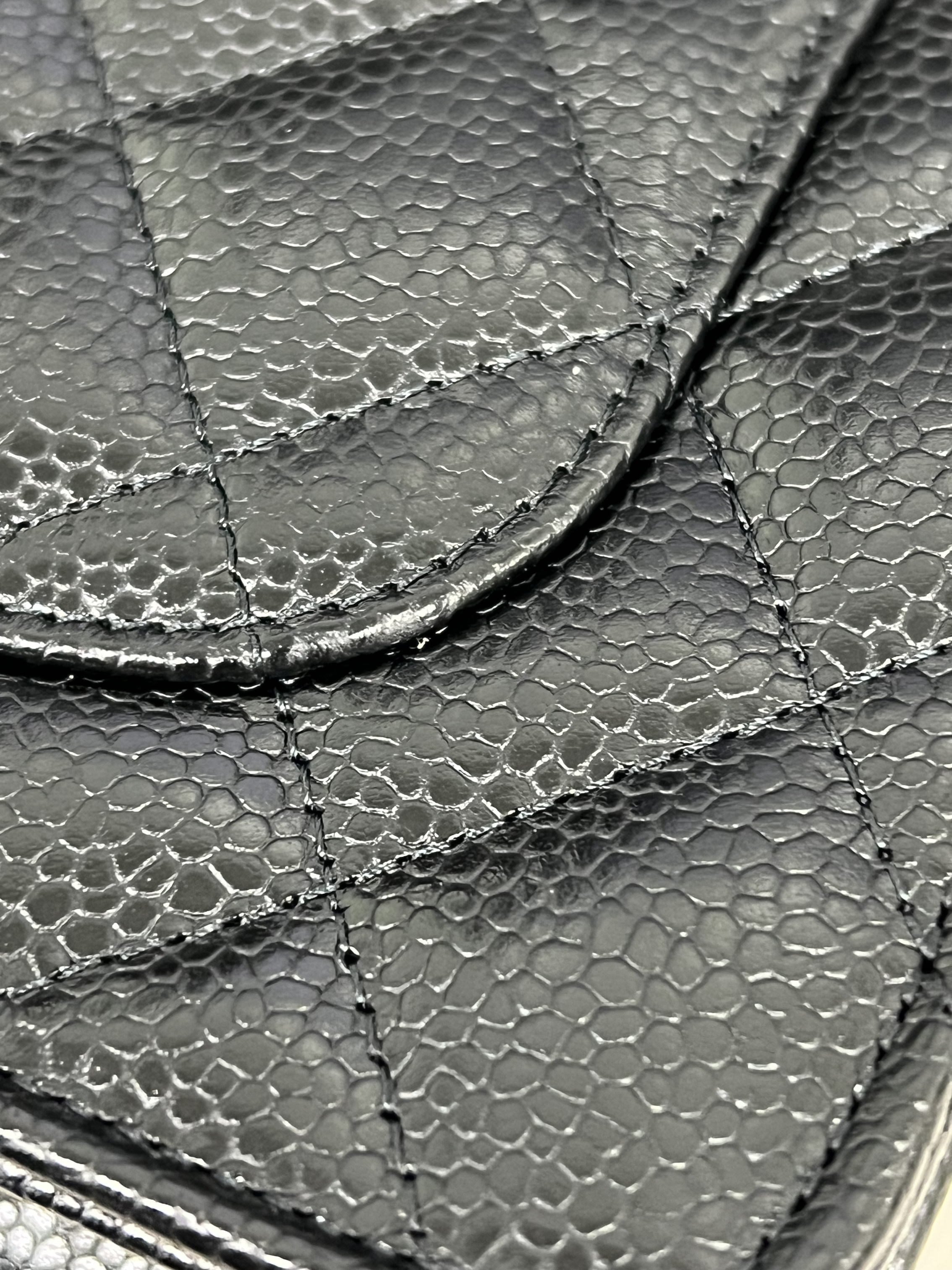 샤넬 클래식 체인 지갑 그레인드 카프스킨 & 실버 메탈 블랙
