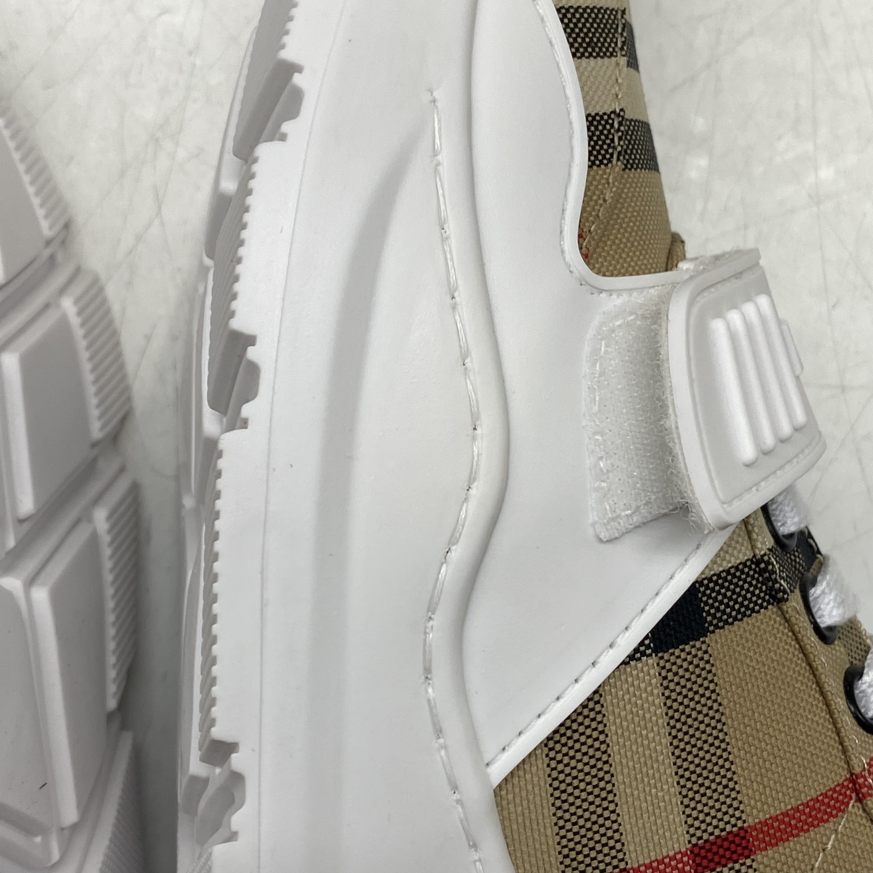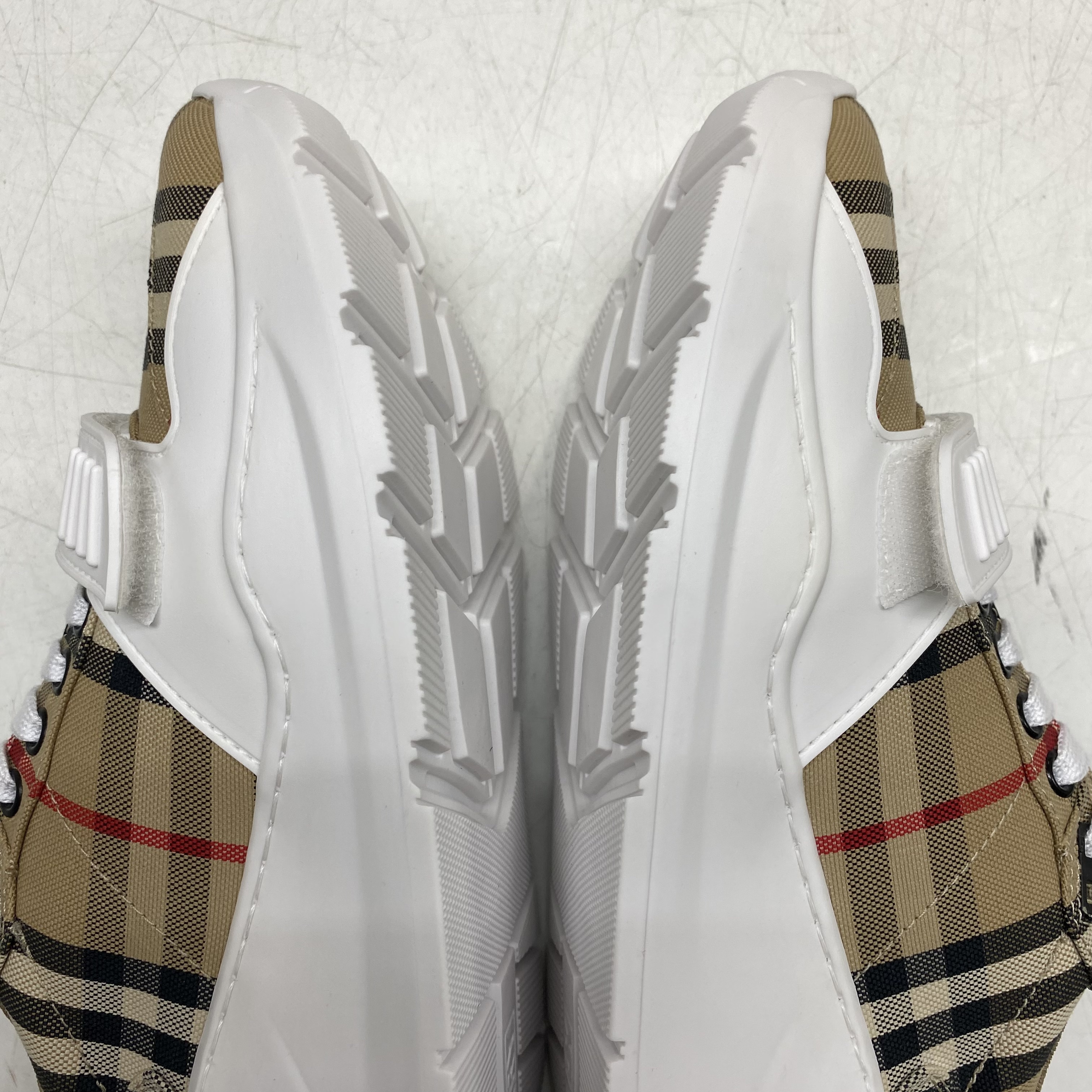 (W) 버버리 빈티지 체크 스웨이드 레더 스니커즈 화이트 아카이브 베이지