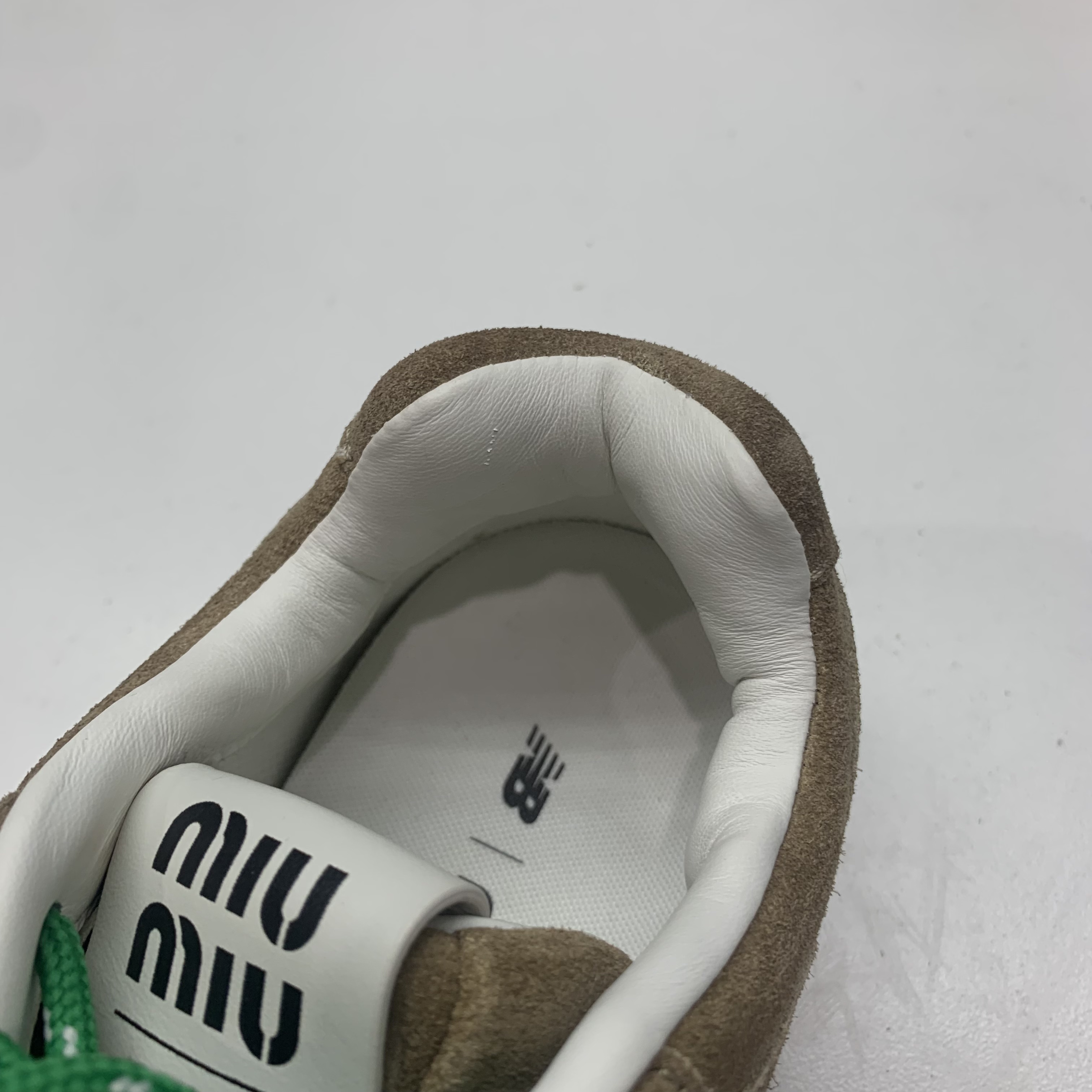 (W) New Balance x Miu Miu 530 Suede Mesh Sneakers Ecru