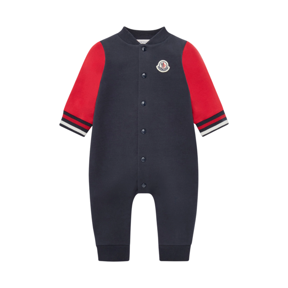 (키즈) 몽클레르 로고 베이비 점프수트 네이비 - 24FW