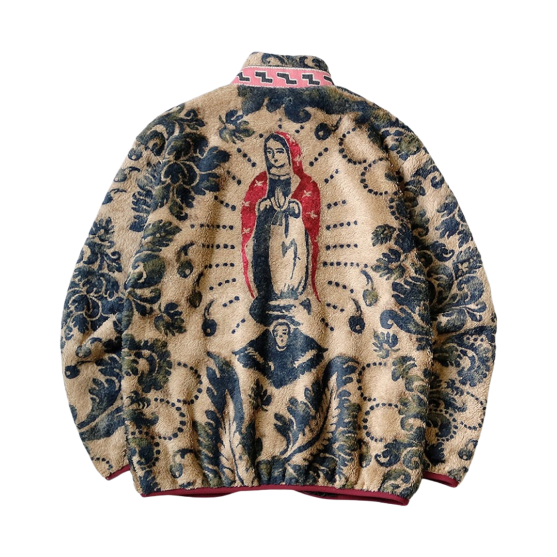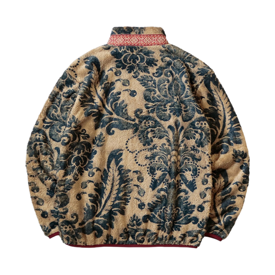 캐피탈 다마스크 패턴 플리스 집 블루존 베이지