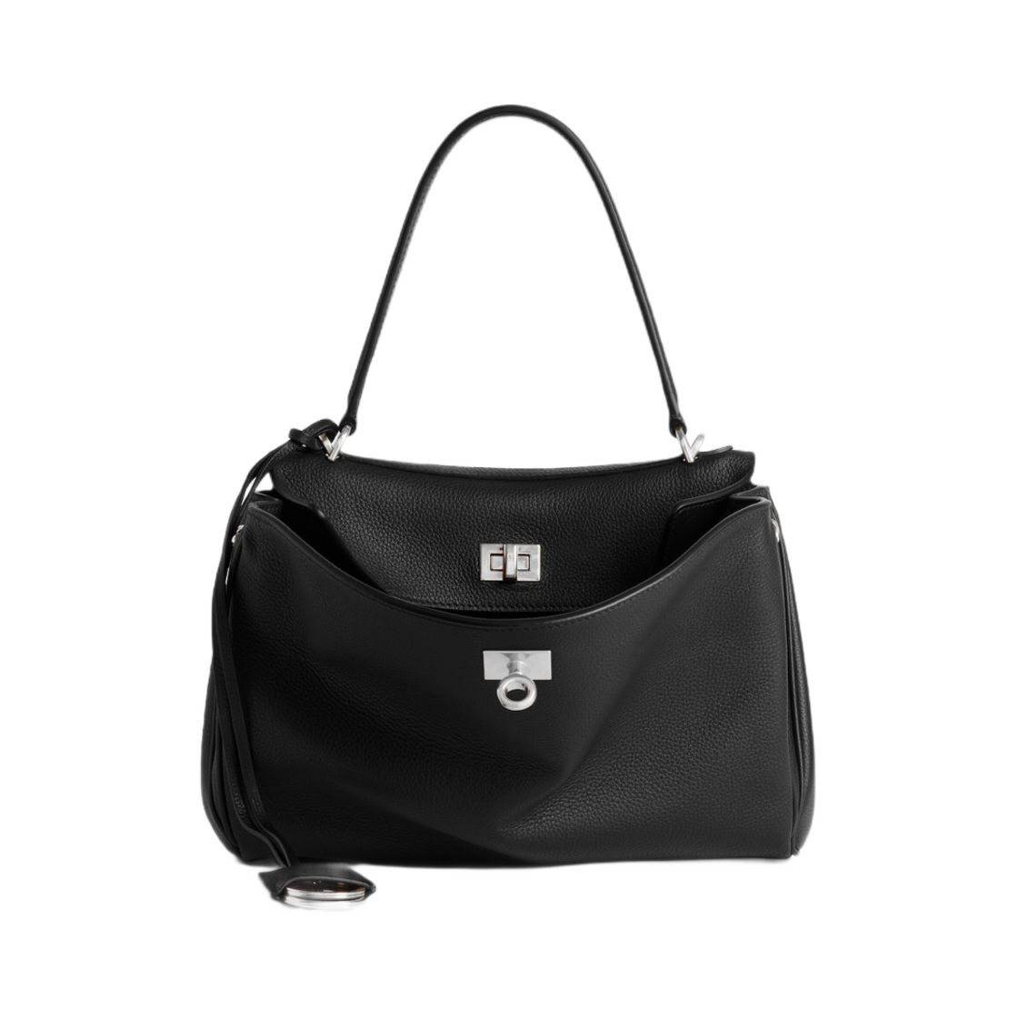 발렌시아가 로데오 핸드백 라지 그레인드 카프스킨 블랙