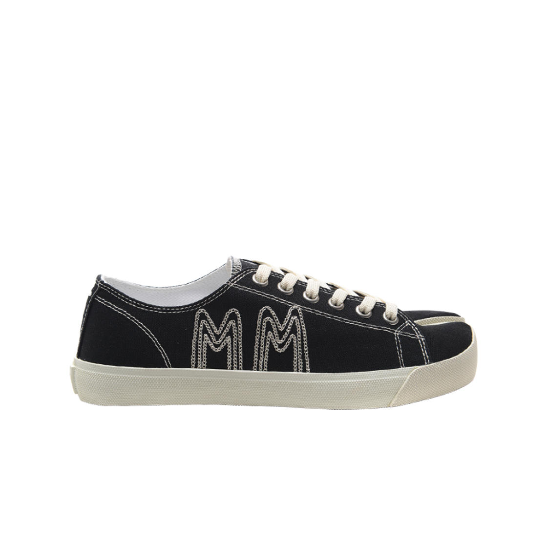[20% 쿠폰] 메종 마르지엘라 타비 로우 스티치 MM 로고 블랙 에크루