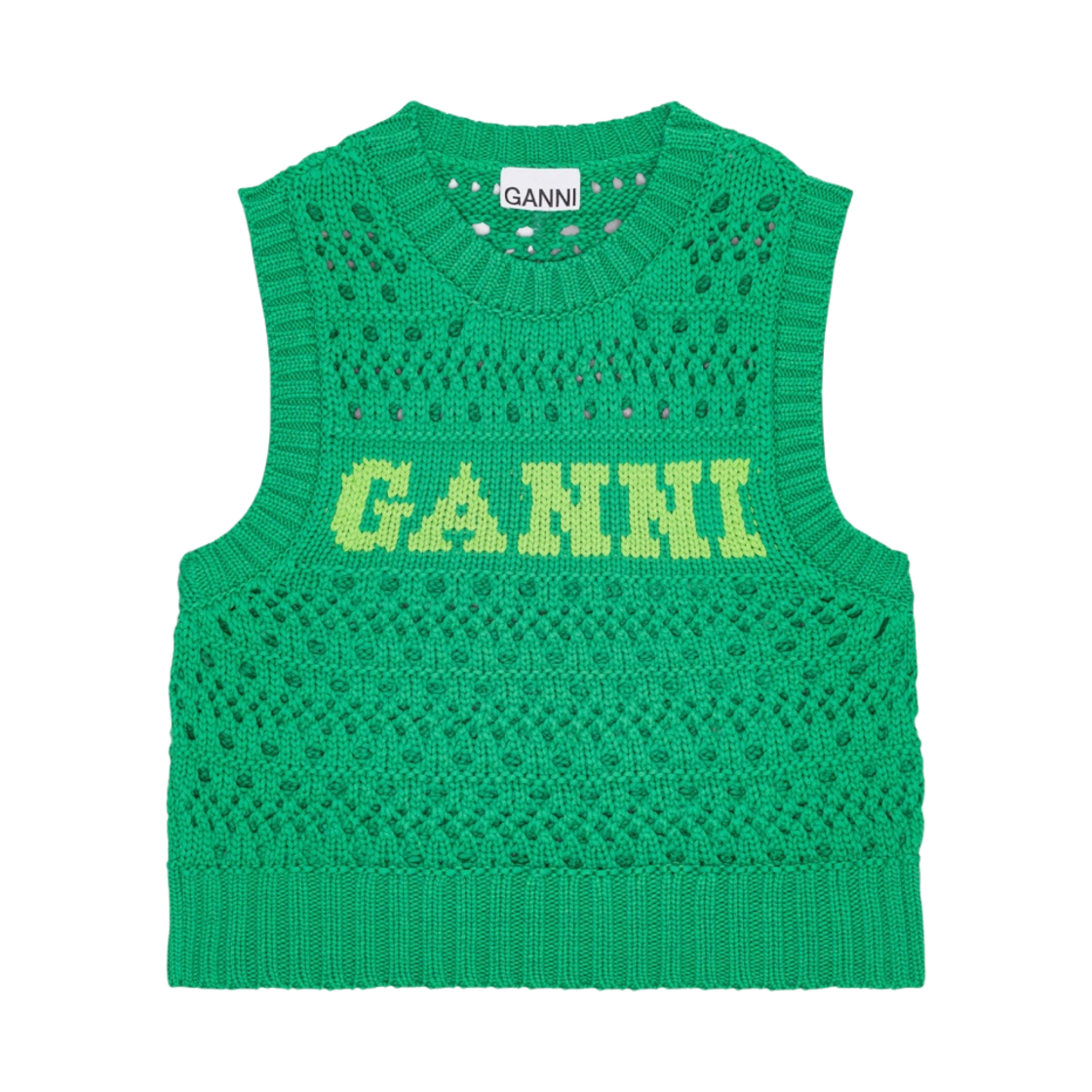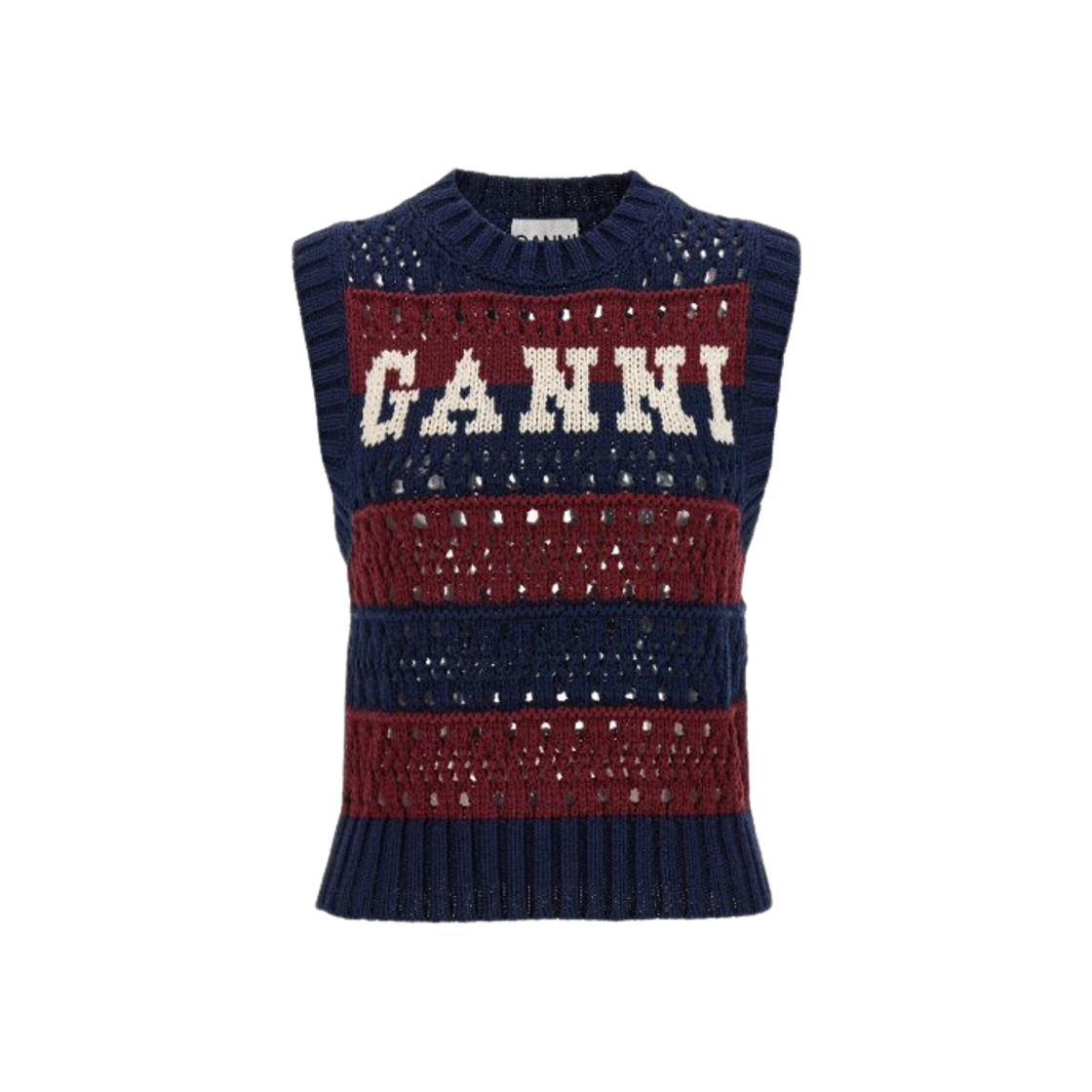 (W) 가니 스트라이프 크로쉐 니트 베스트 멀티컬러