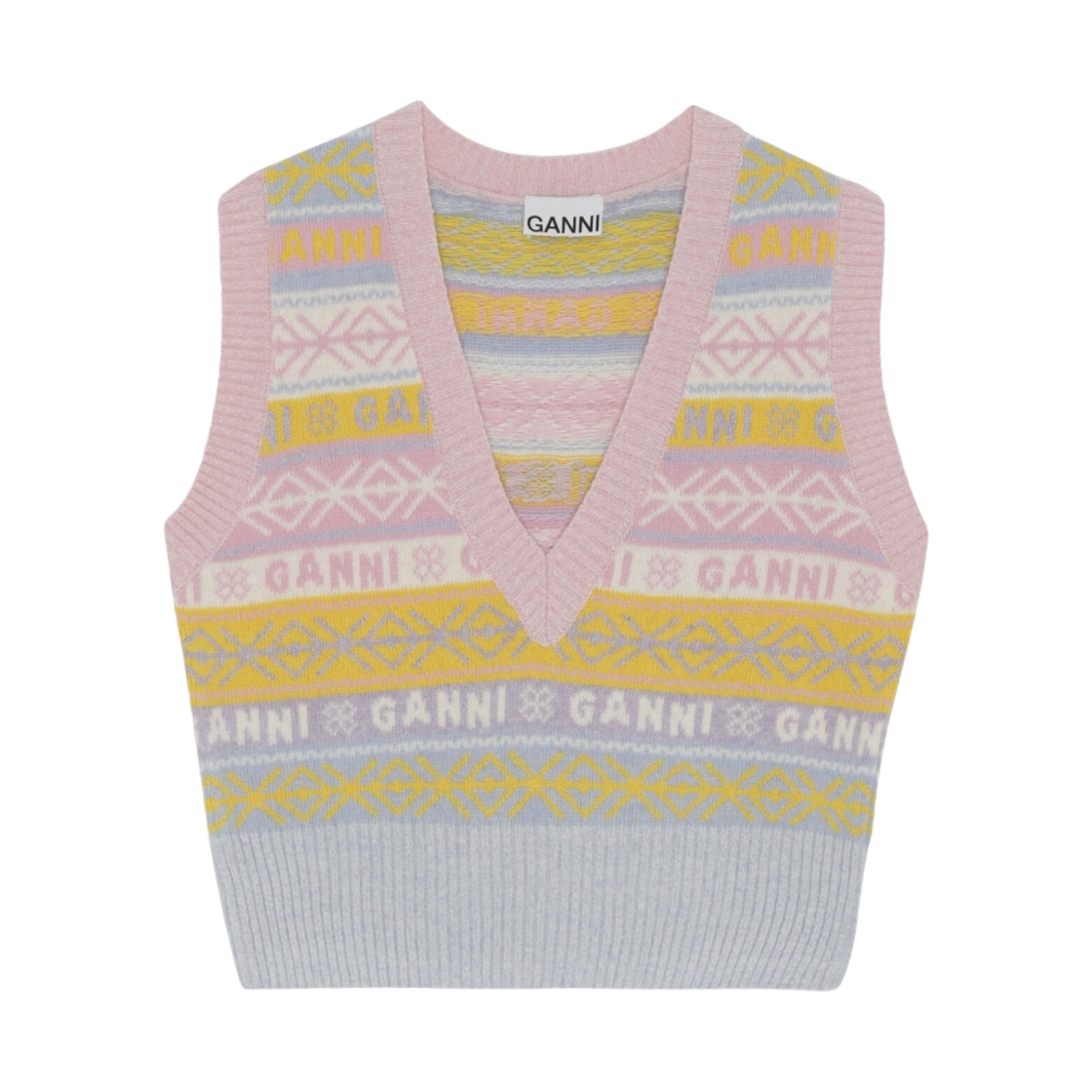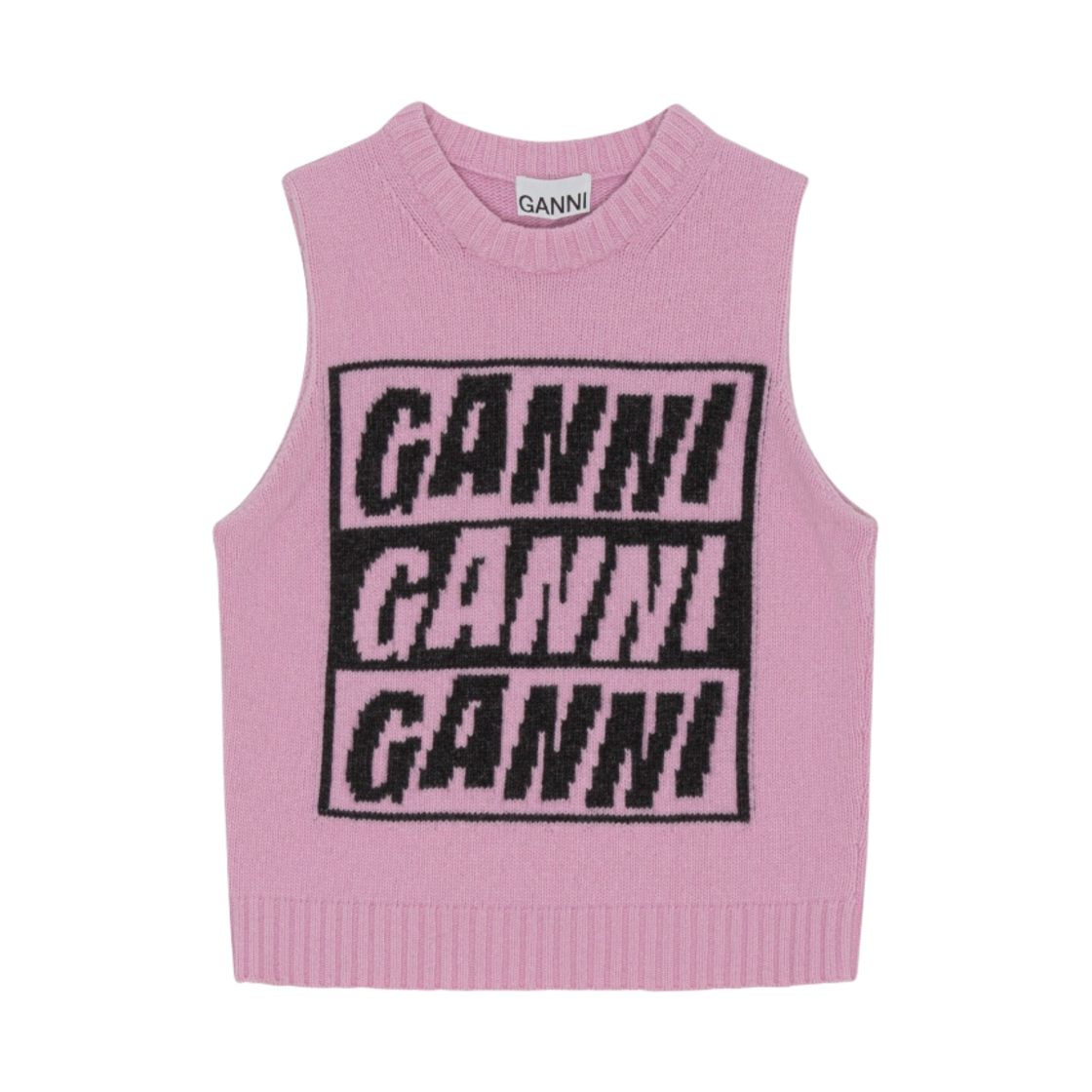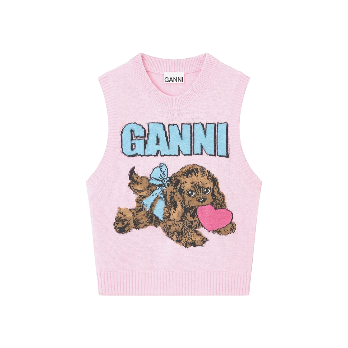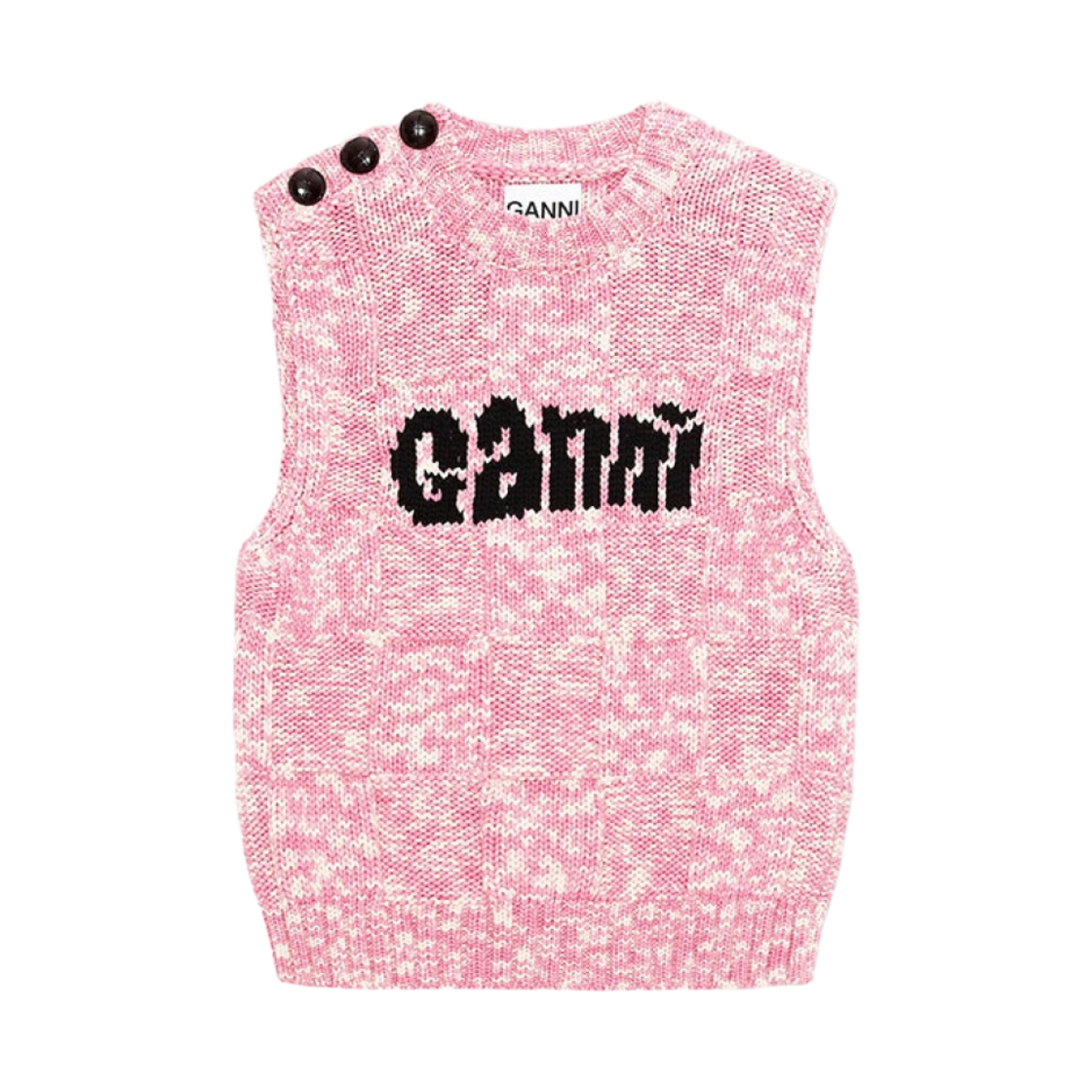 가니 그래픽 울 핸드 니트 베스트 초크 핑크