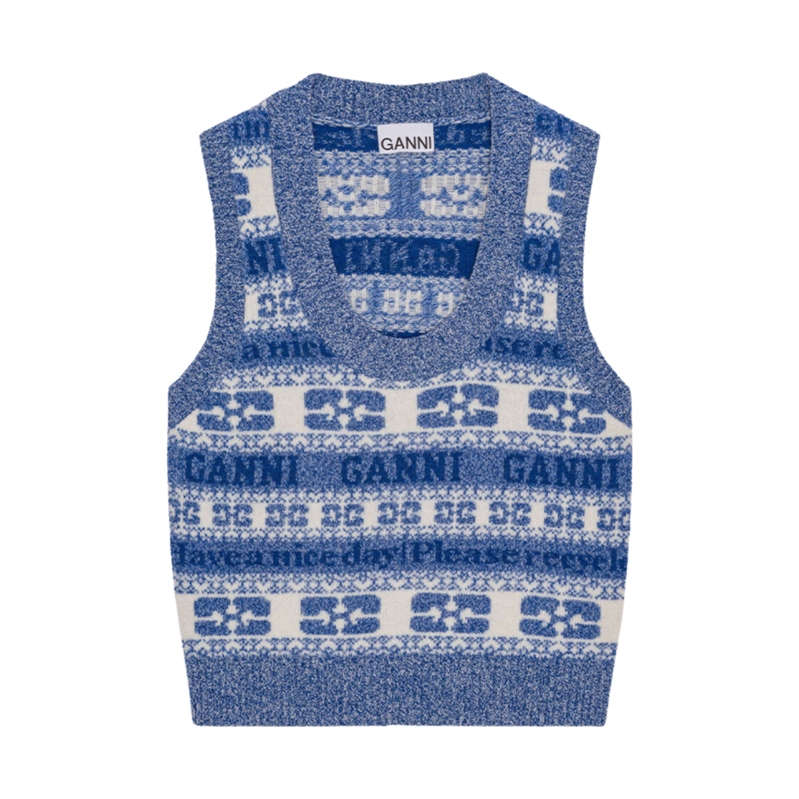 (W) 가니 그래픽 코튼 베스트 소달라이트 블루