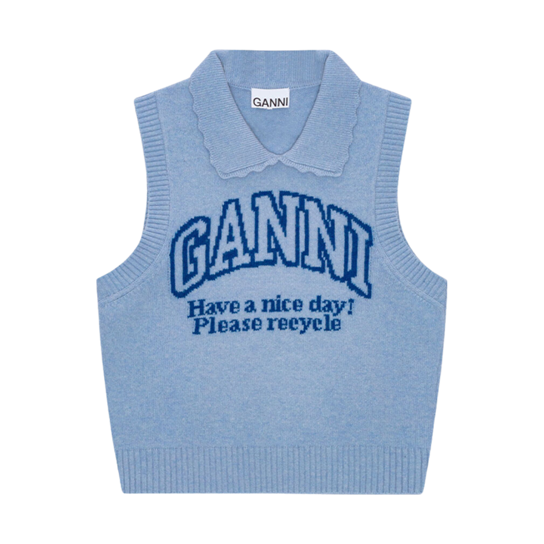 (W) 가니 로고 코튼 베스트 일루젼 블루