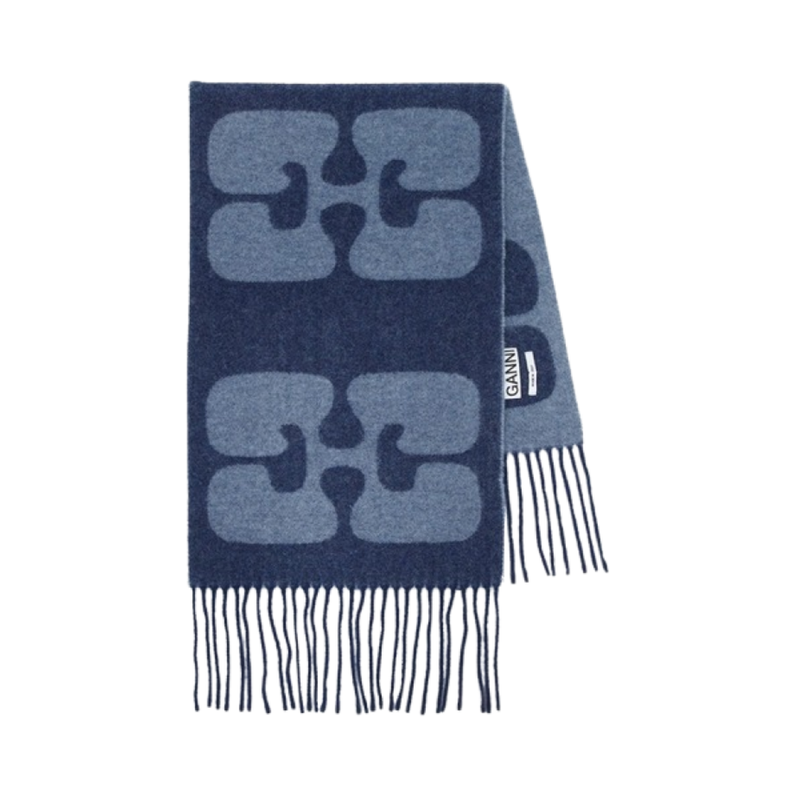 가니 체커드 울 프린지 스카프 실버 레이크 블루