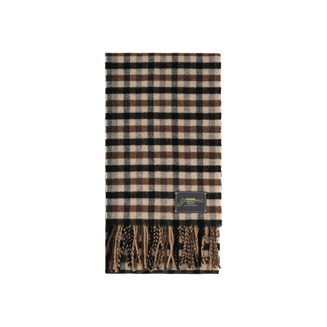 [13% 쿠폰] 가니 체크 프린지 울 스카프 치커리 커피