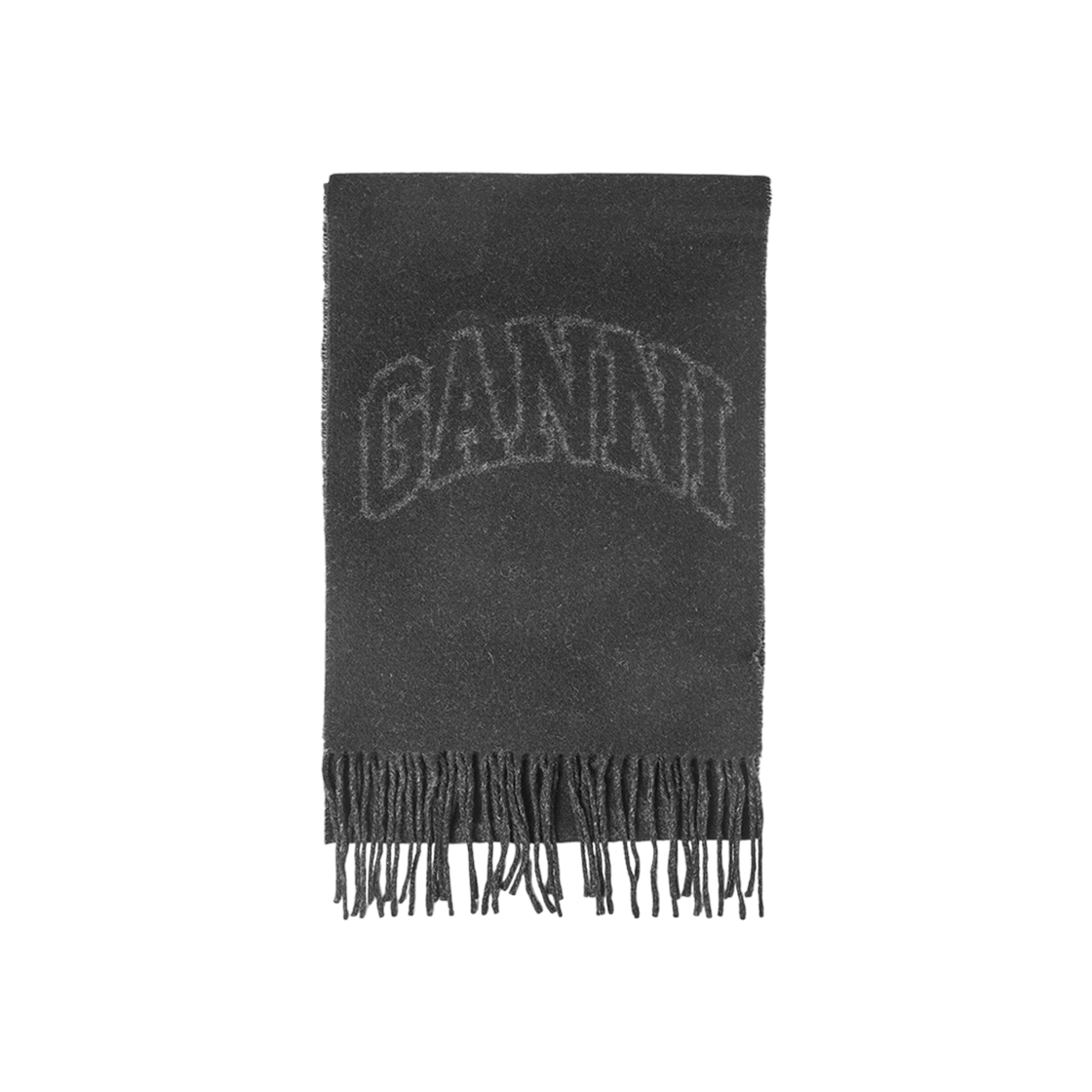 [13% 쿠폰] 가니 프린지 로고 스카프 블랙