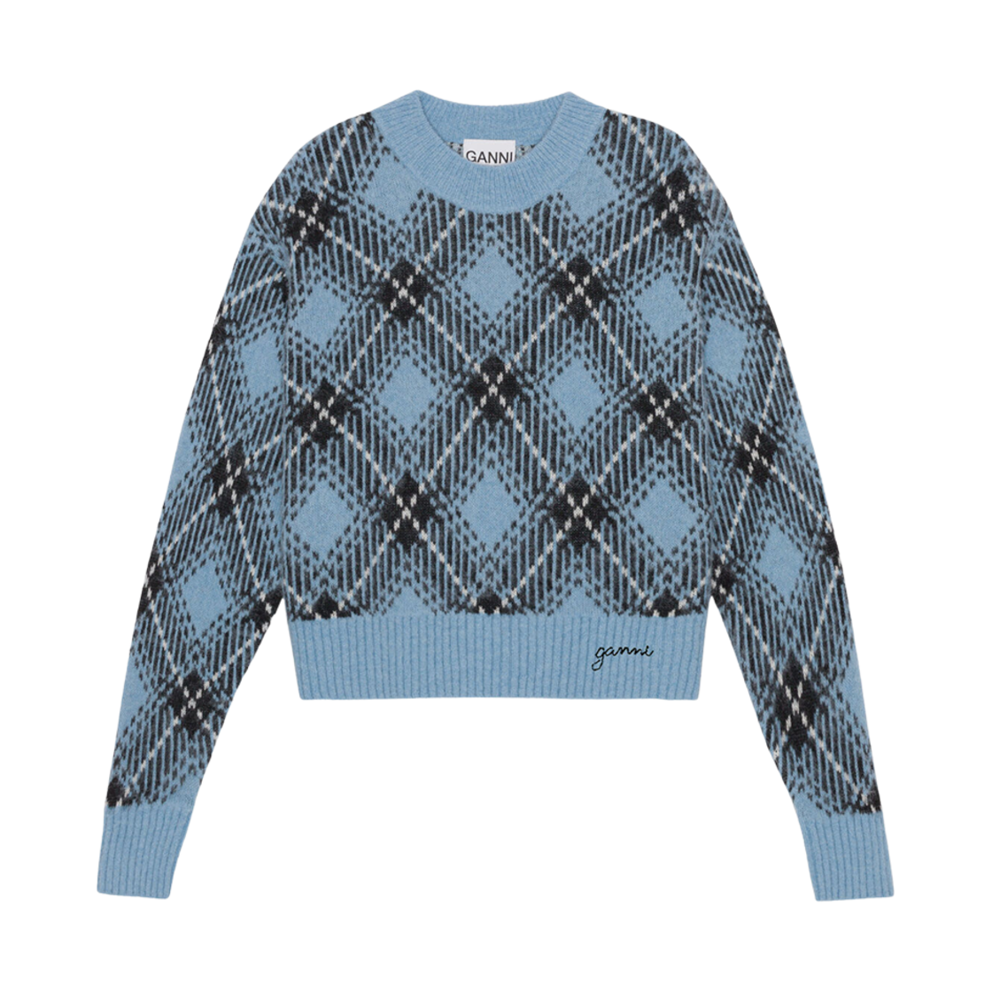 (W) 가니 체커드 오버사이즈 울 풀오버 실버 레이크 블루