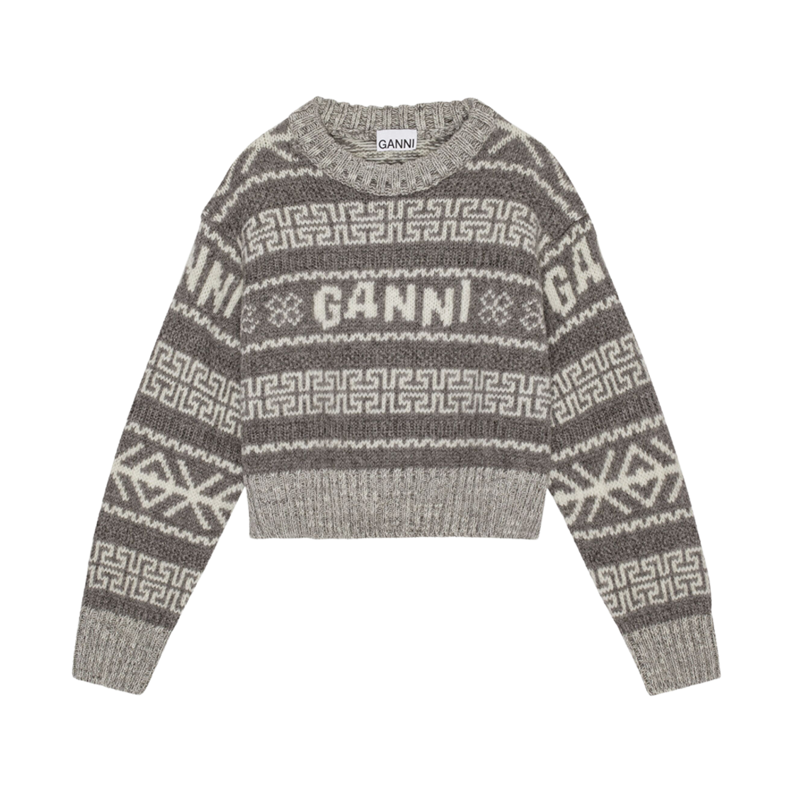 (W) 가니 그래픽 타이거 자카드 울 스웨터 그레이