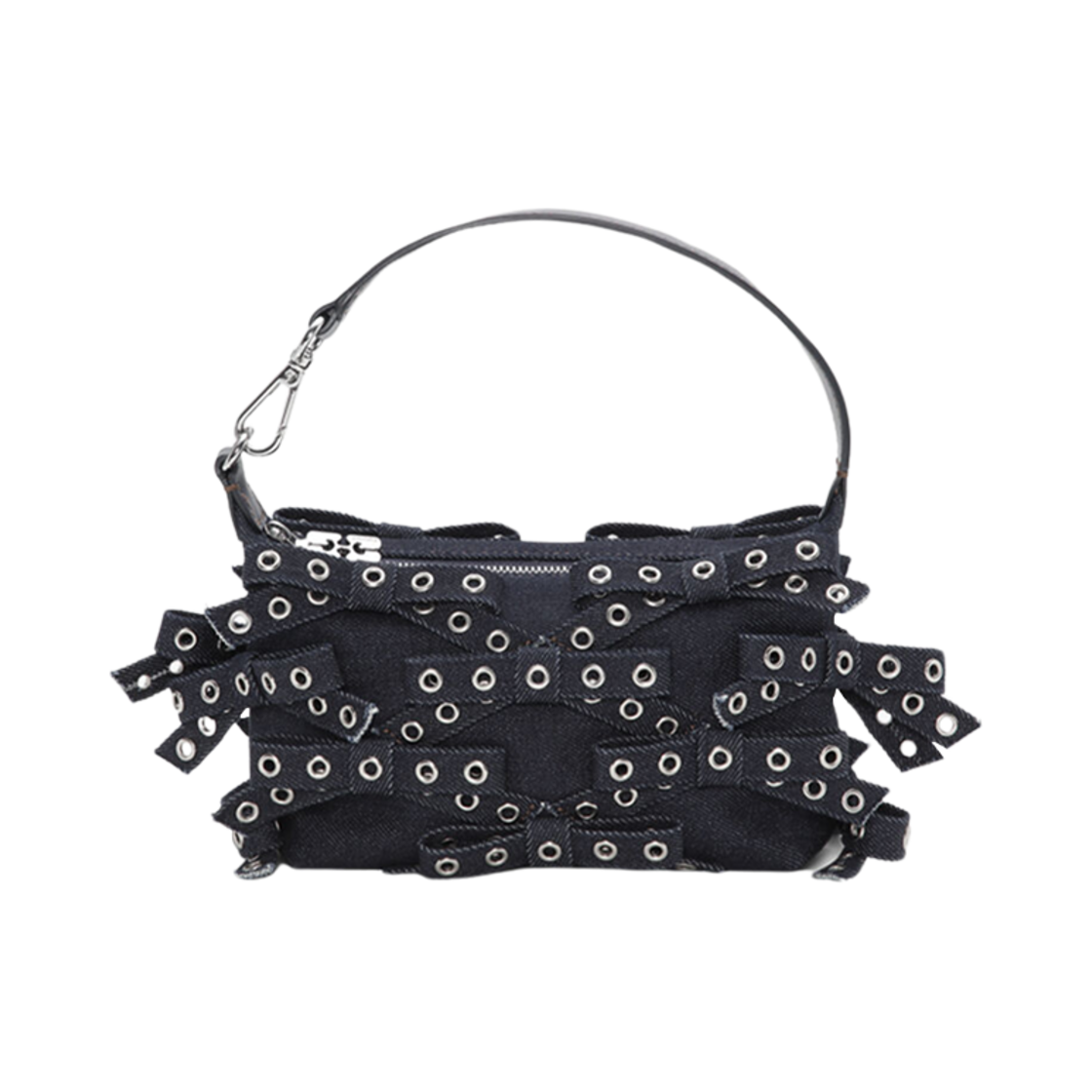 가니 보우 아일렛 버터플라이 데님 스몰 파우치백 다크 네이비