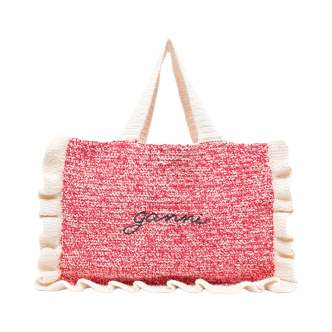 가니 크로쉐 프릴 토트 솔리드 백 쇼킹 핑크