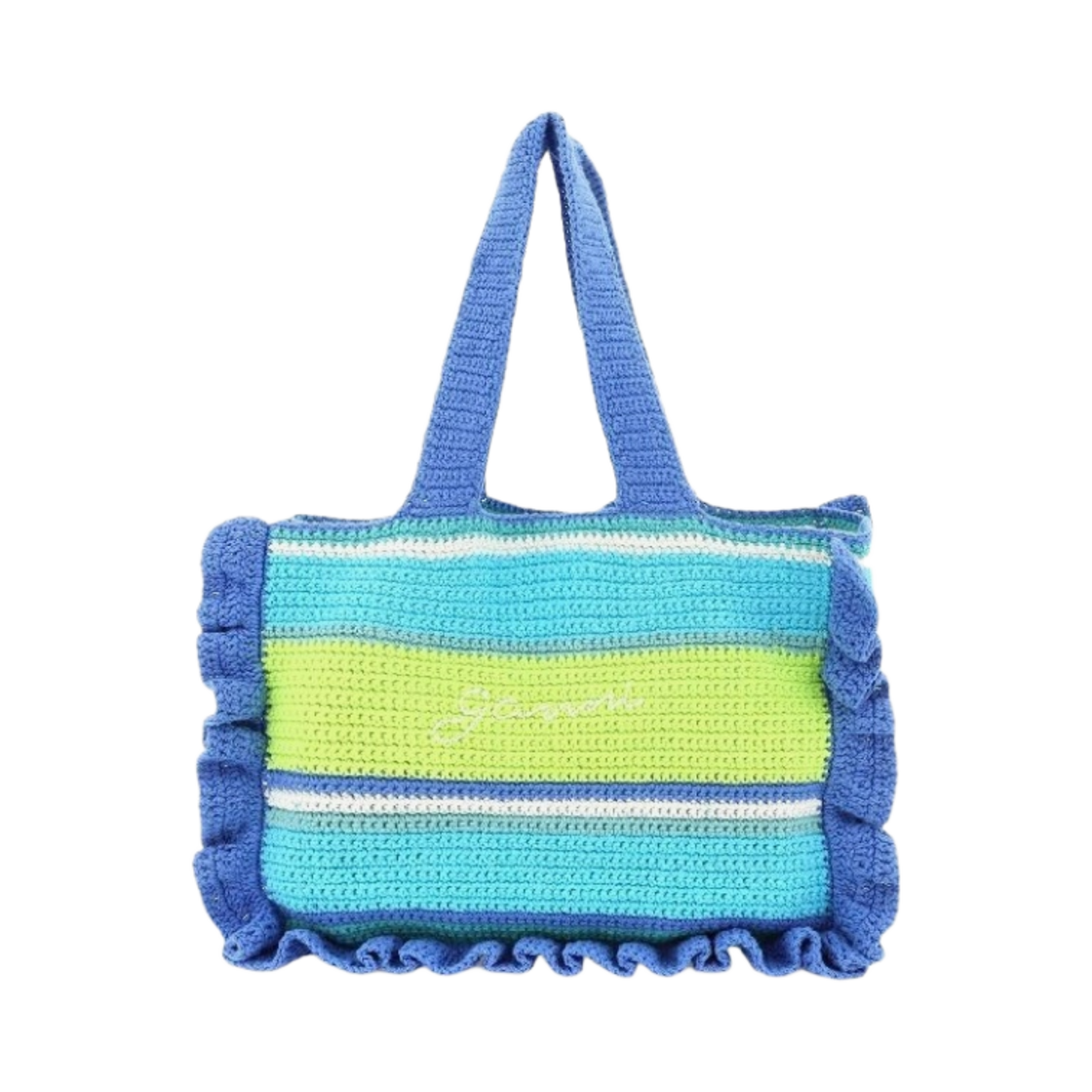 가니 크로쉐 프릴 토트백 블루 큐라소