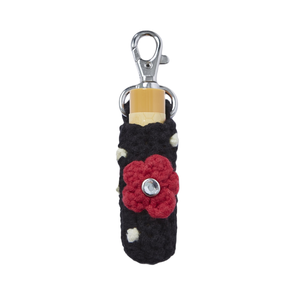 가먼츠팹 꽃 손뜨개 입술 보습제 열쇠고리 블랙