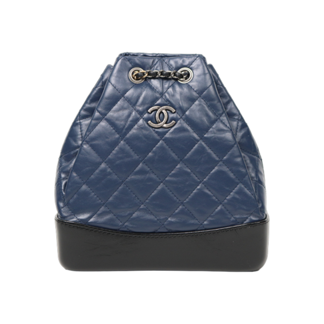 샤넬 가브리엘 백팩 스몰 빈티지 카프스킨 & 골드 실버 메탈 블루