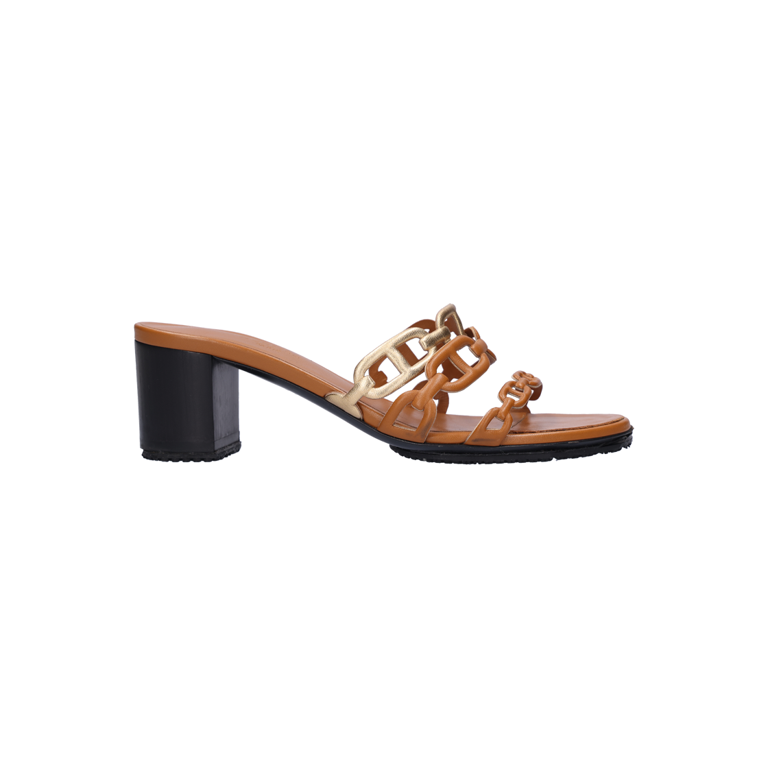 에르메스 H021056Z 오란 샌들 레더 골드 36.5