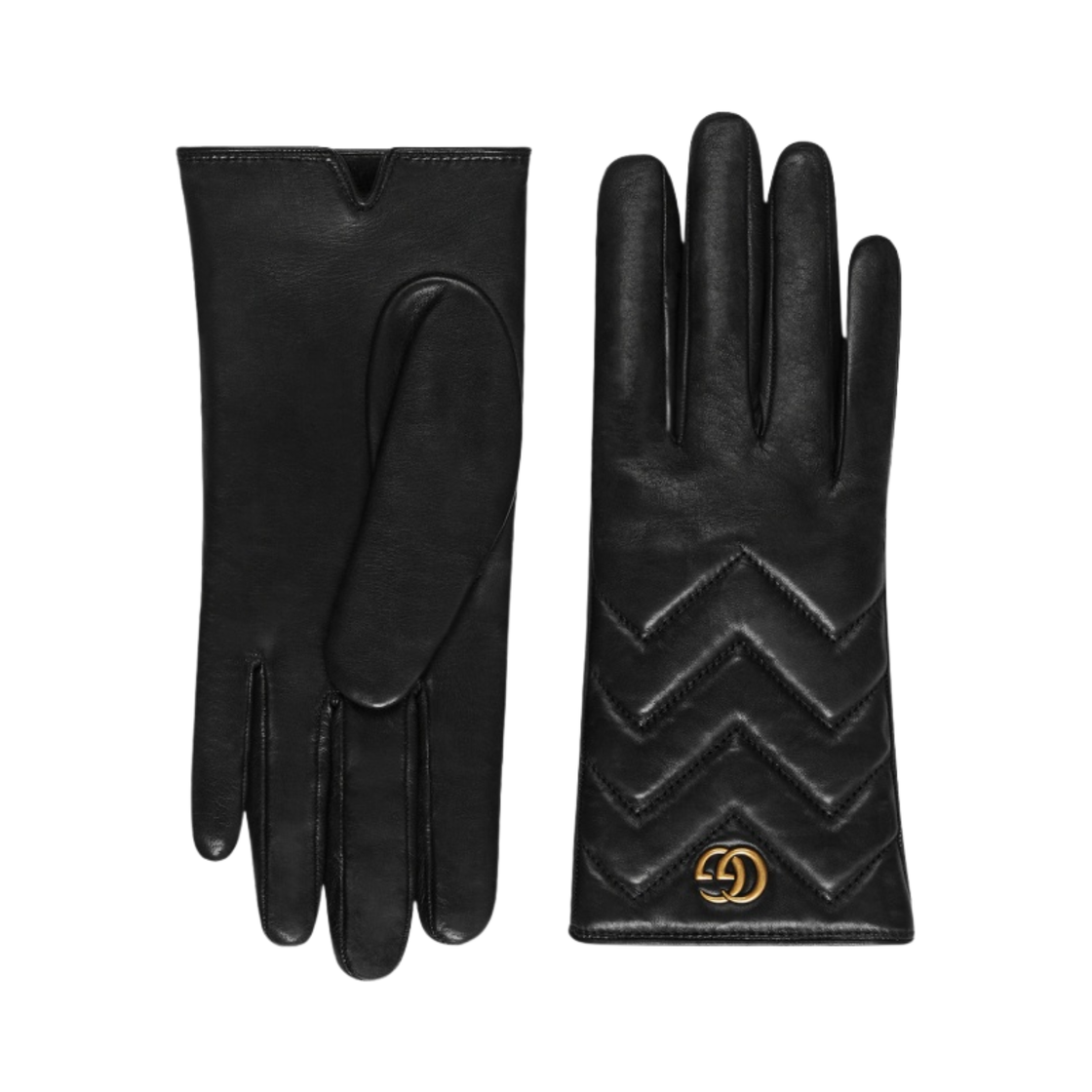 (W) 구찌 GG 마몽 쉐브론 레더 글러브 블랙 쉐브론 레더