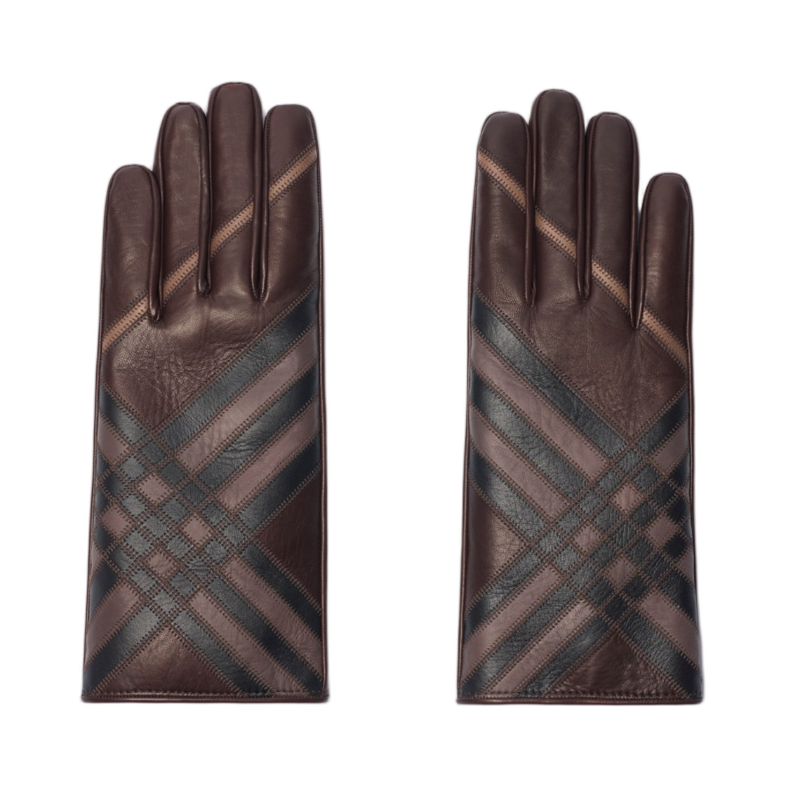 버버리 체크 인타르시아 레더 글러브 트러플 브라운