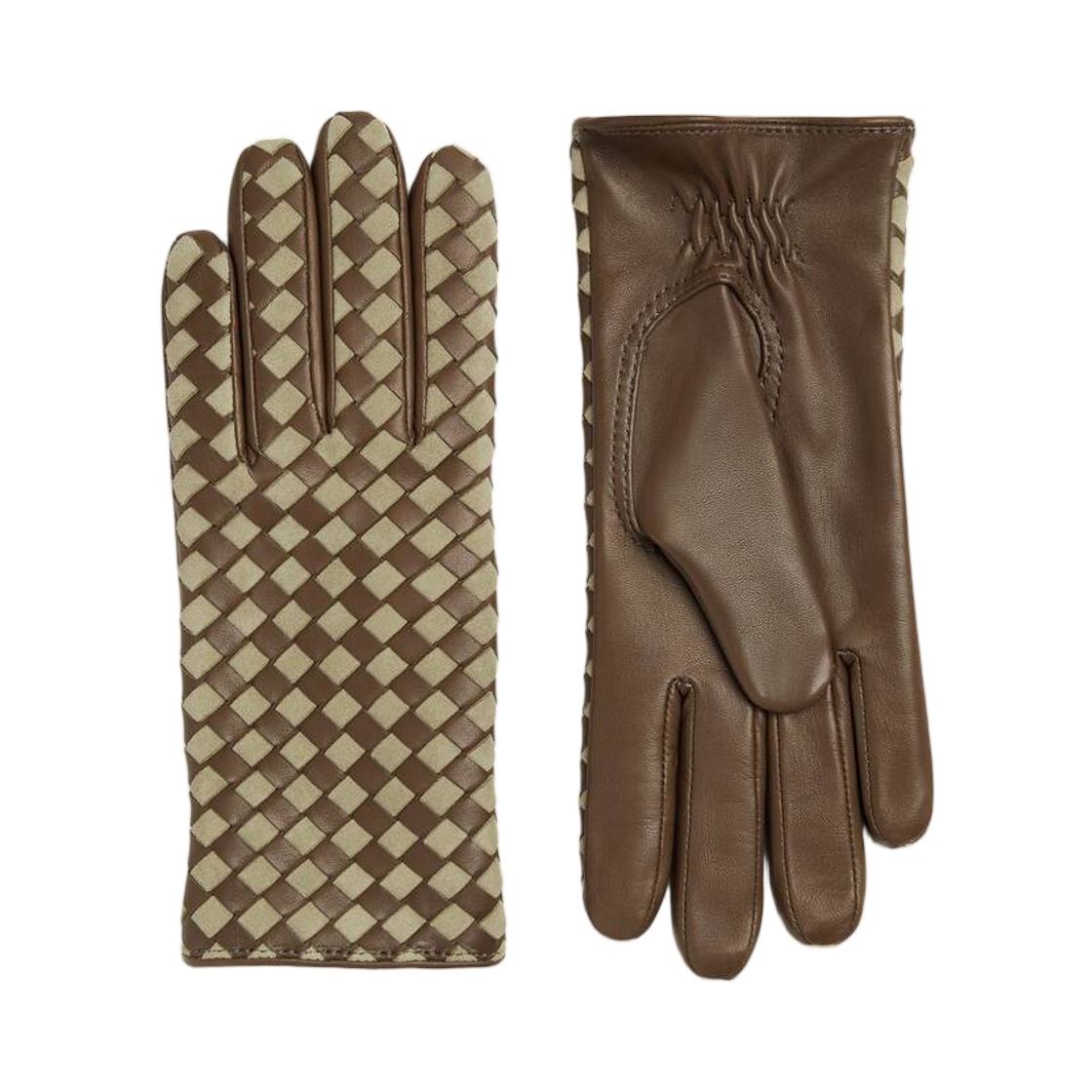 보테가 베네타 인트레치아토 레더 앤 스웨이드 글러브 폰단트 토바코