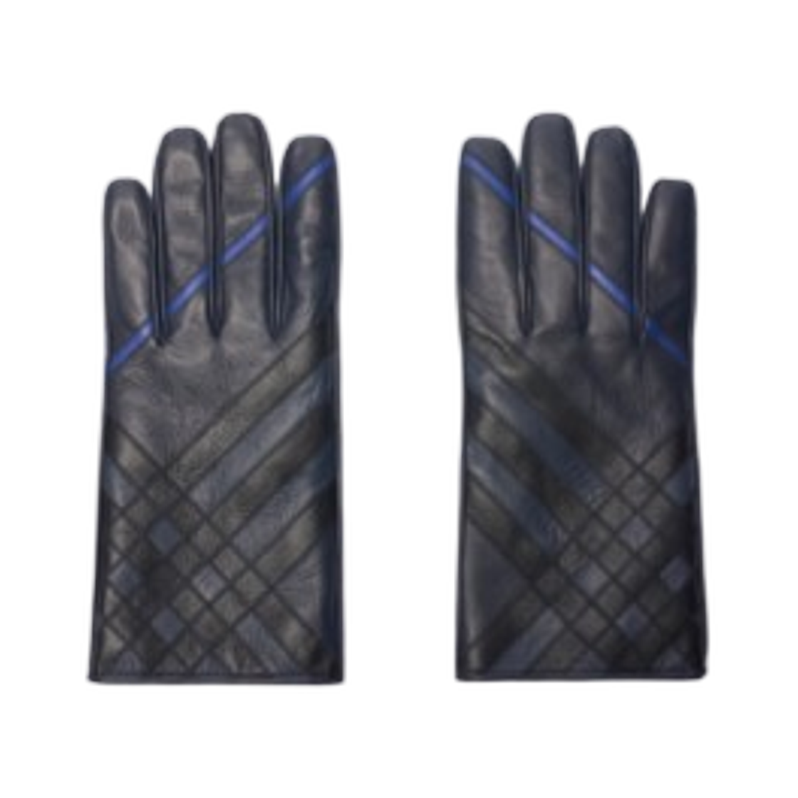 버버리 체크 인타르시아 레더 글러브 스톰 블루