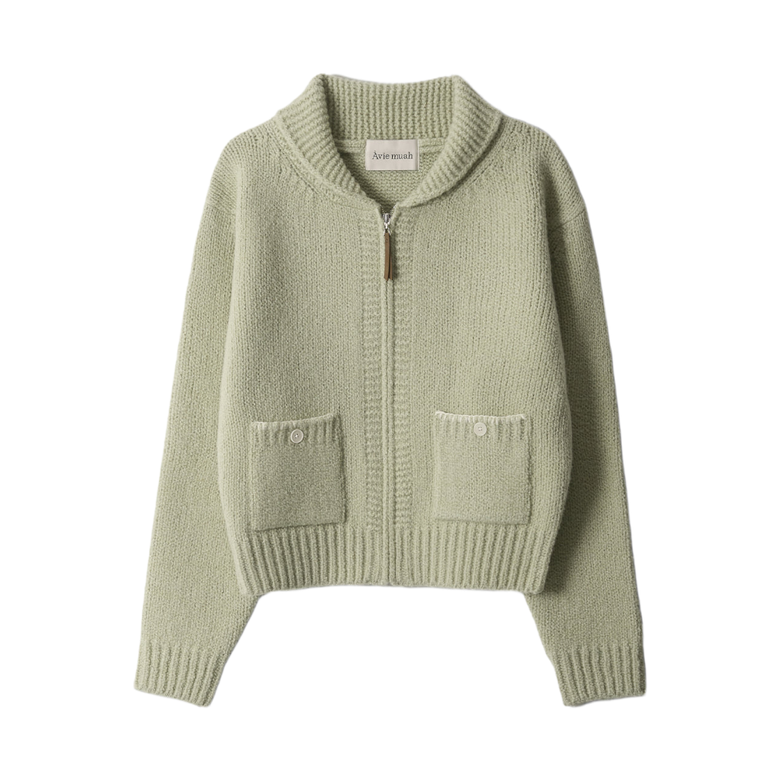 (W) 아비에무아 슬리브 패치 울 집업 가디건 민트