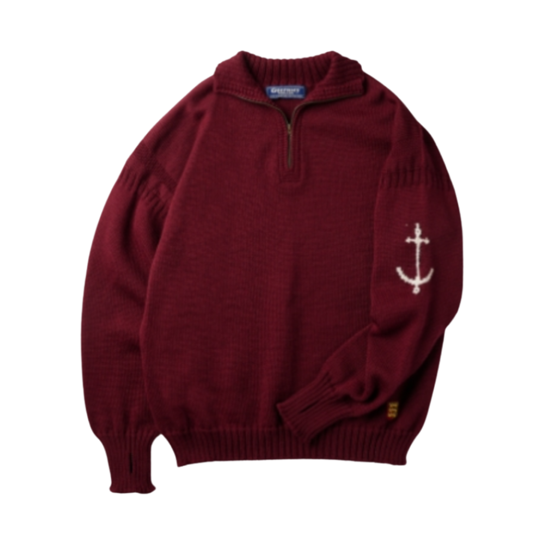 건지울른스 피셔맨 하프 집업 스웨터 버건디