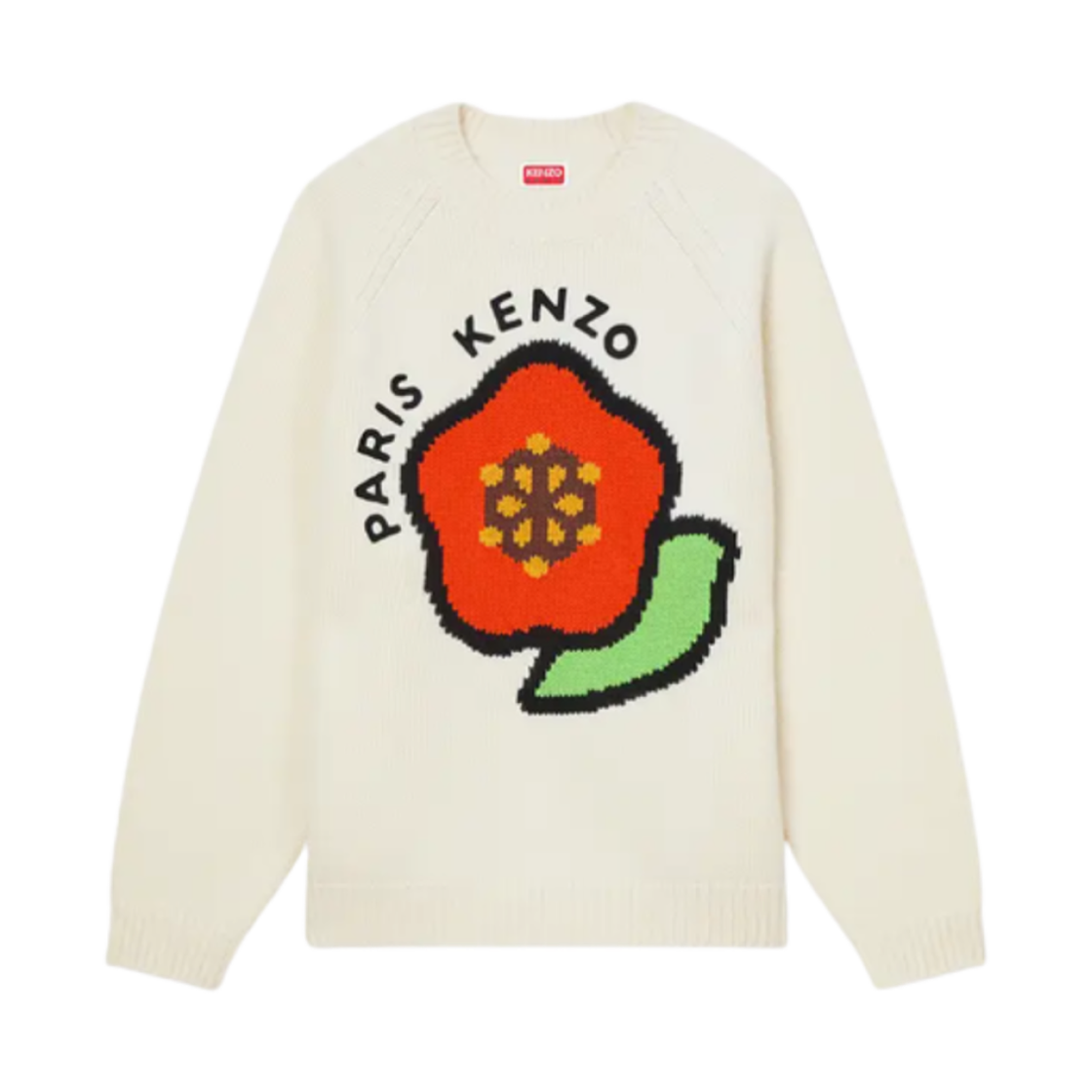 겐조 보케 플라워 메리노 울 점퍼 오프 화이트