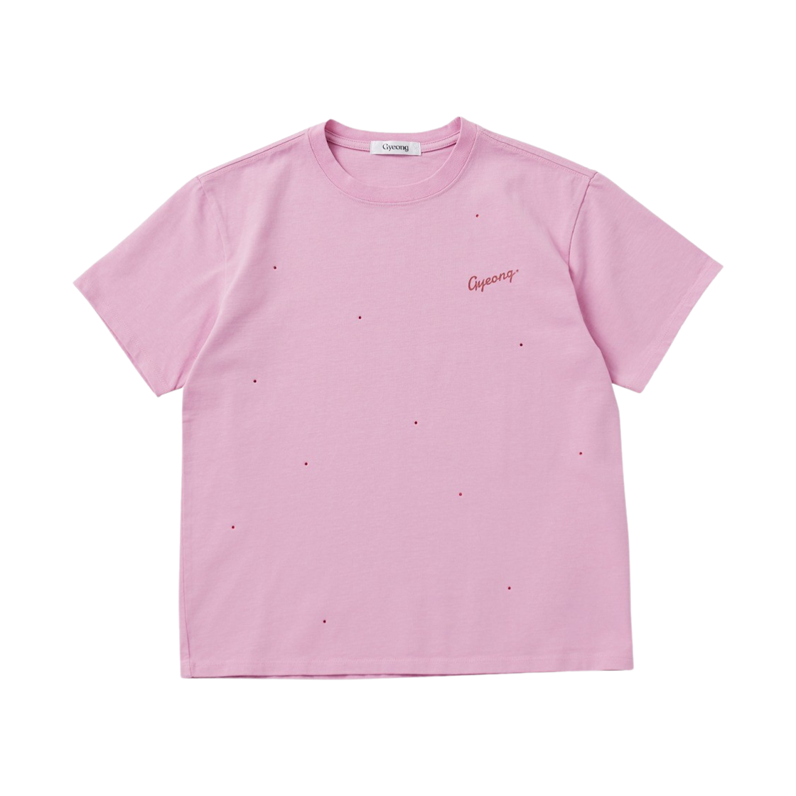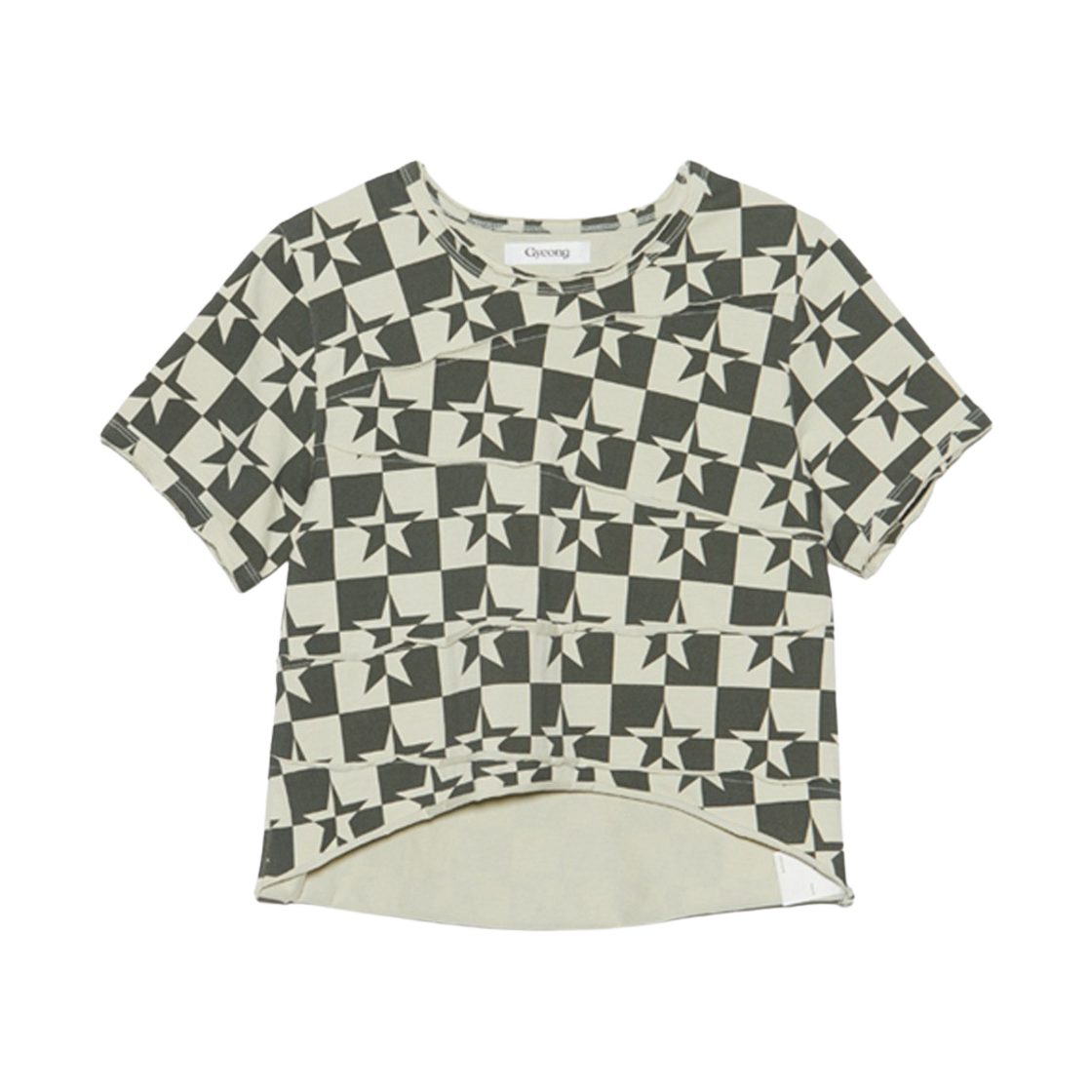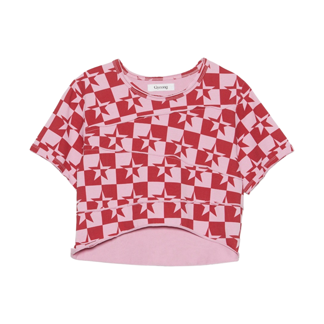 경 스타 프린트 컷 오프 크롭 티 핑크