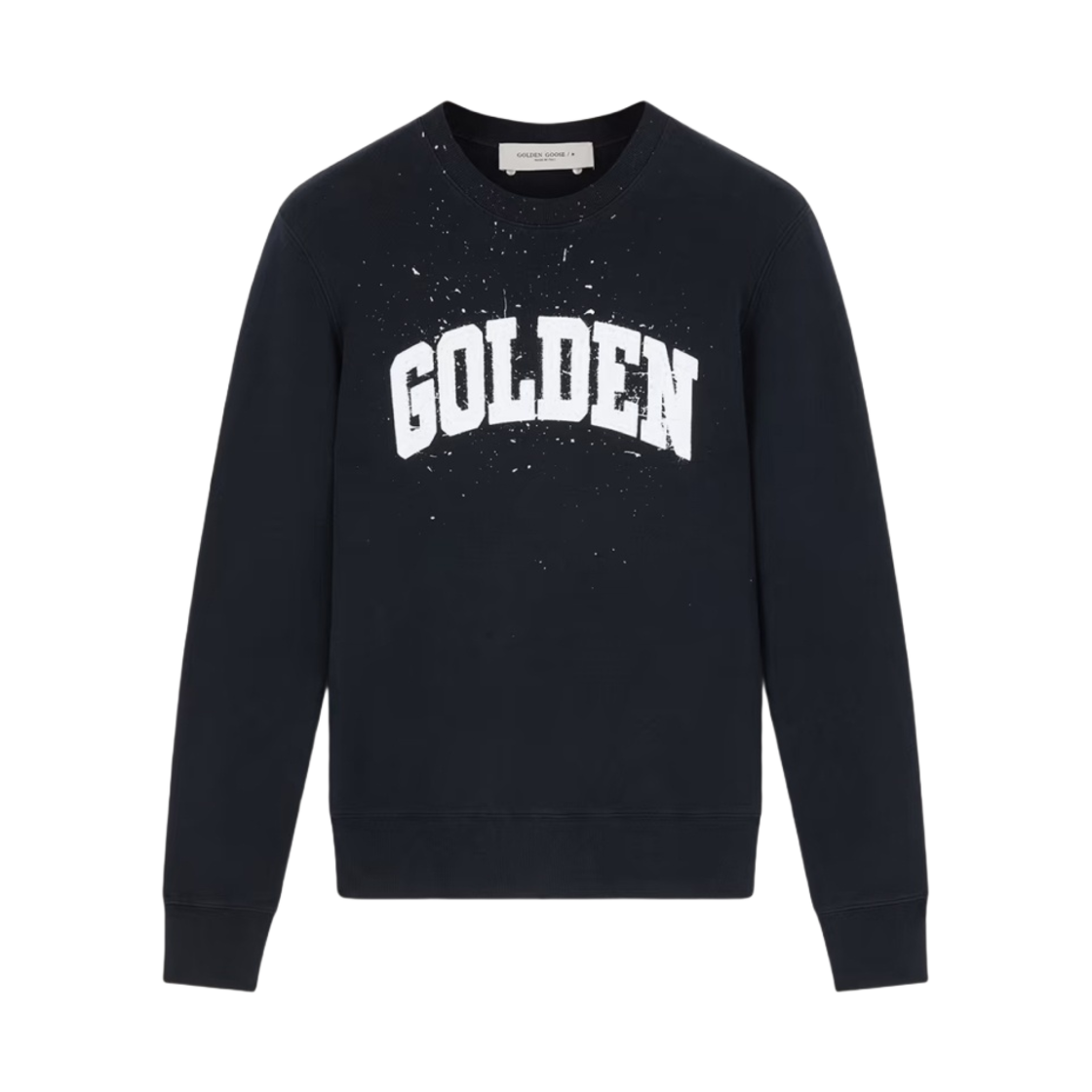 골든구스 저니 컬렉션 콘트라스팅 화이트 로고 아치볼드 스웨트셔츠 다크 블루