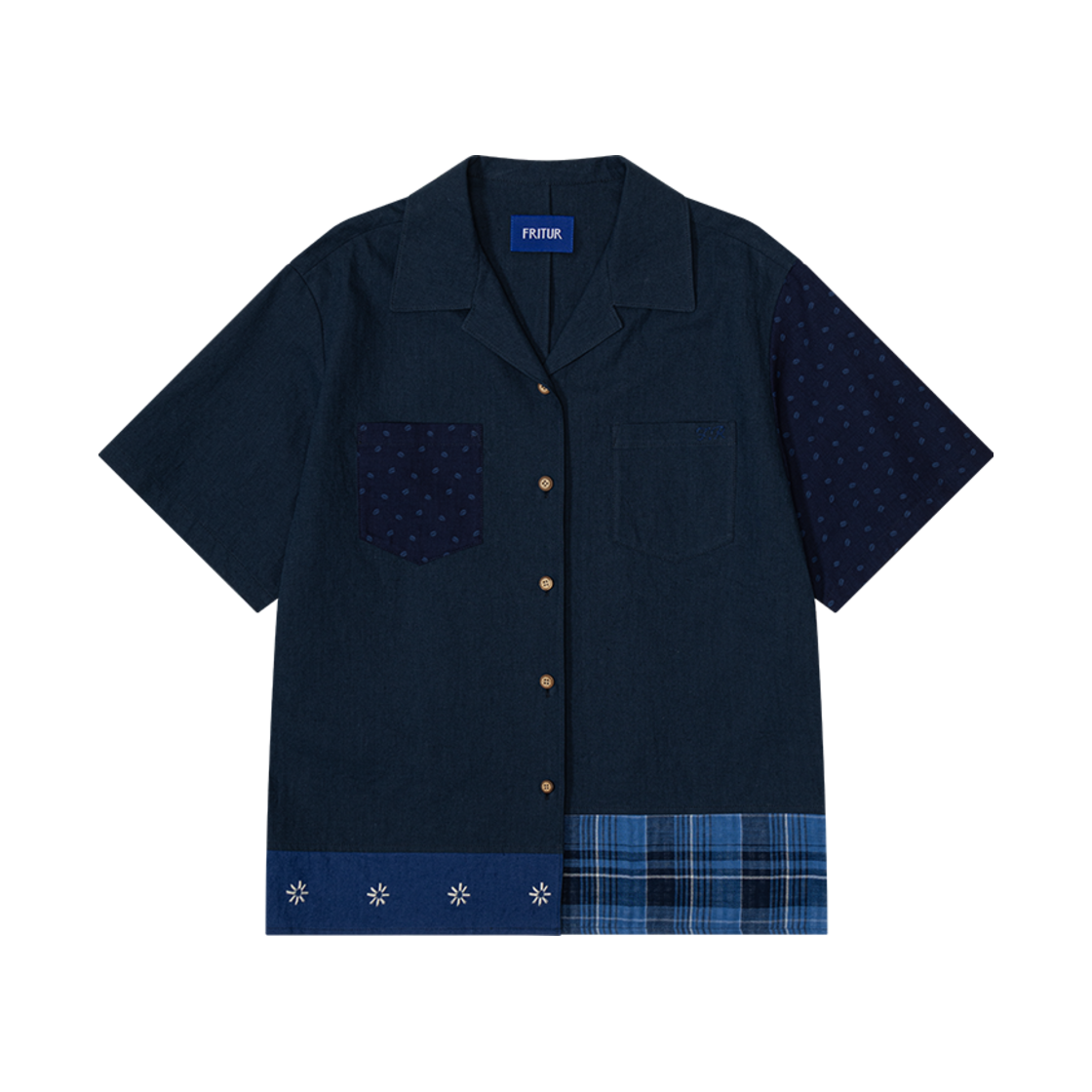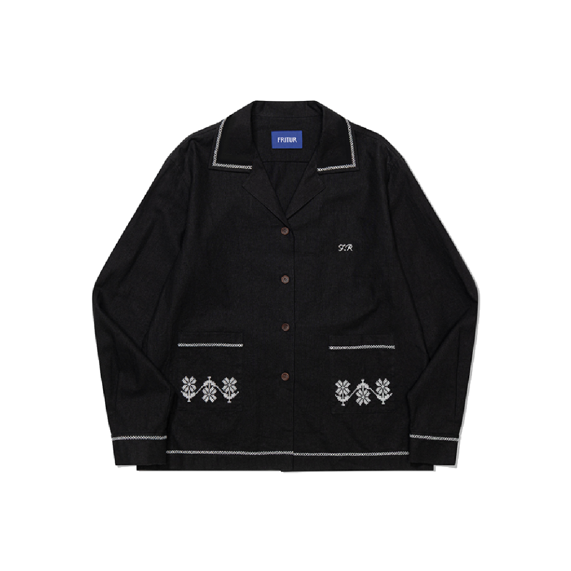 프리터 플라워 스티치 포켓 셔츠 블랙