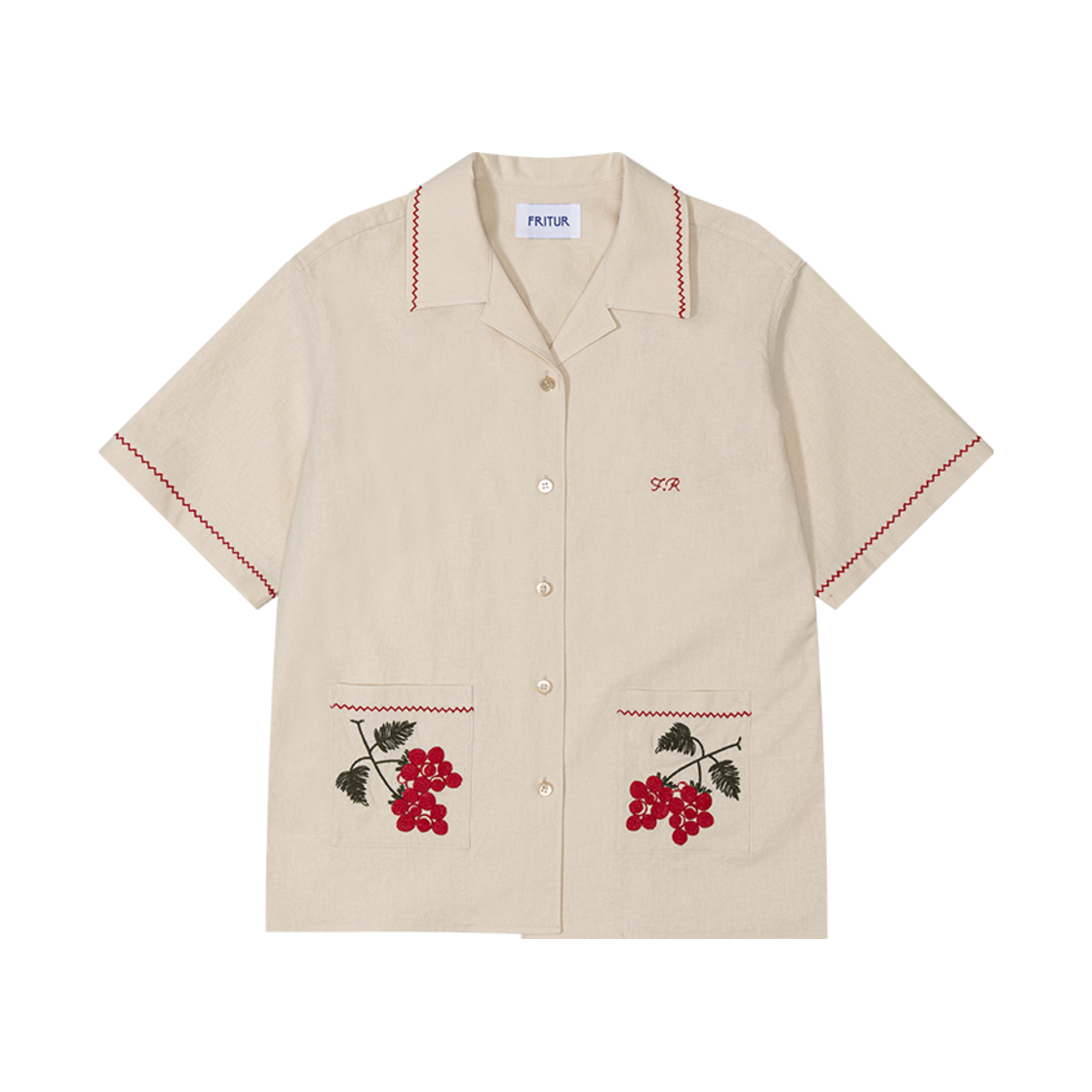 프리터 라즈베리 엠브로이더리 셔츠 베이지