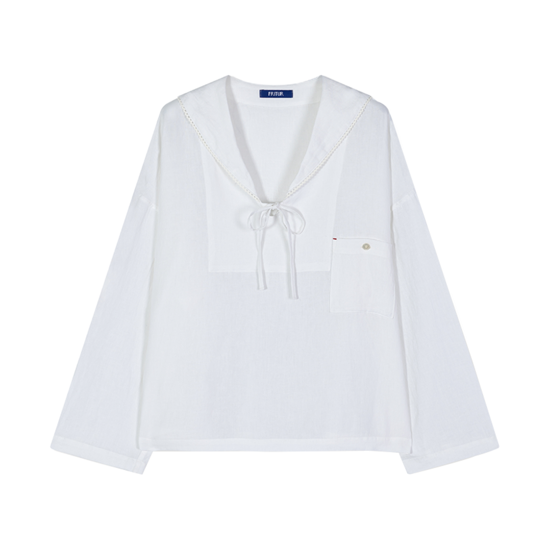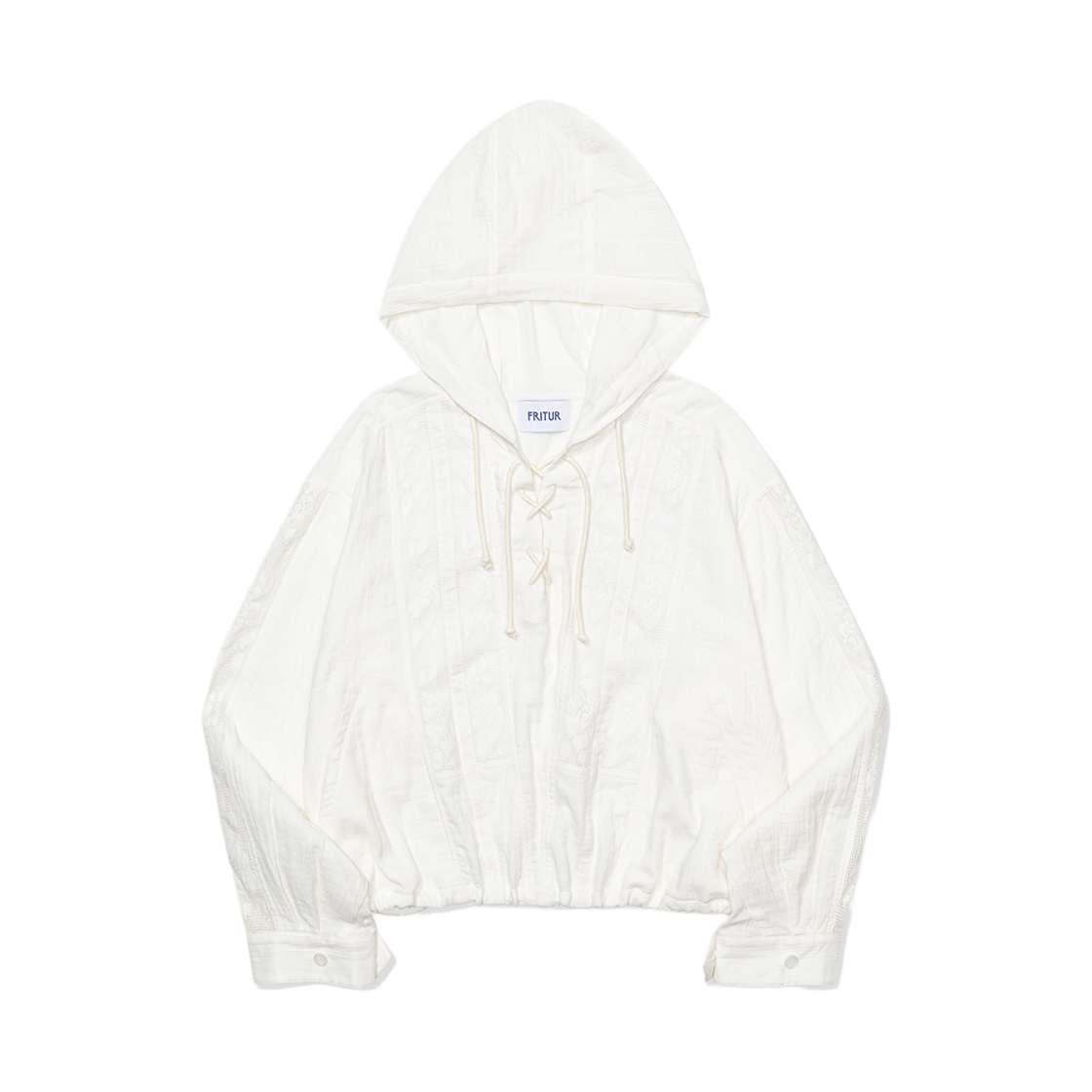 프리터 크로셰 레이스 후디 셔츠 화이트